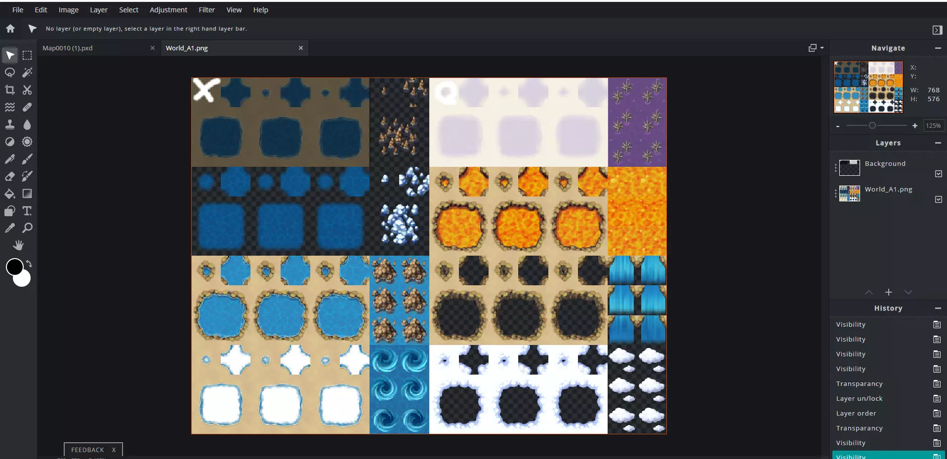 关闭上述所有图层后,将地图保存为.png格式到【layers】文件夹(我们之前创建的那个)。然后,对地图的上部执行相同操作,不过这次要关闭游戏中角色下方和同一高度的图层(地面、墙壁以及大多数物体)。