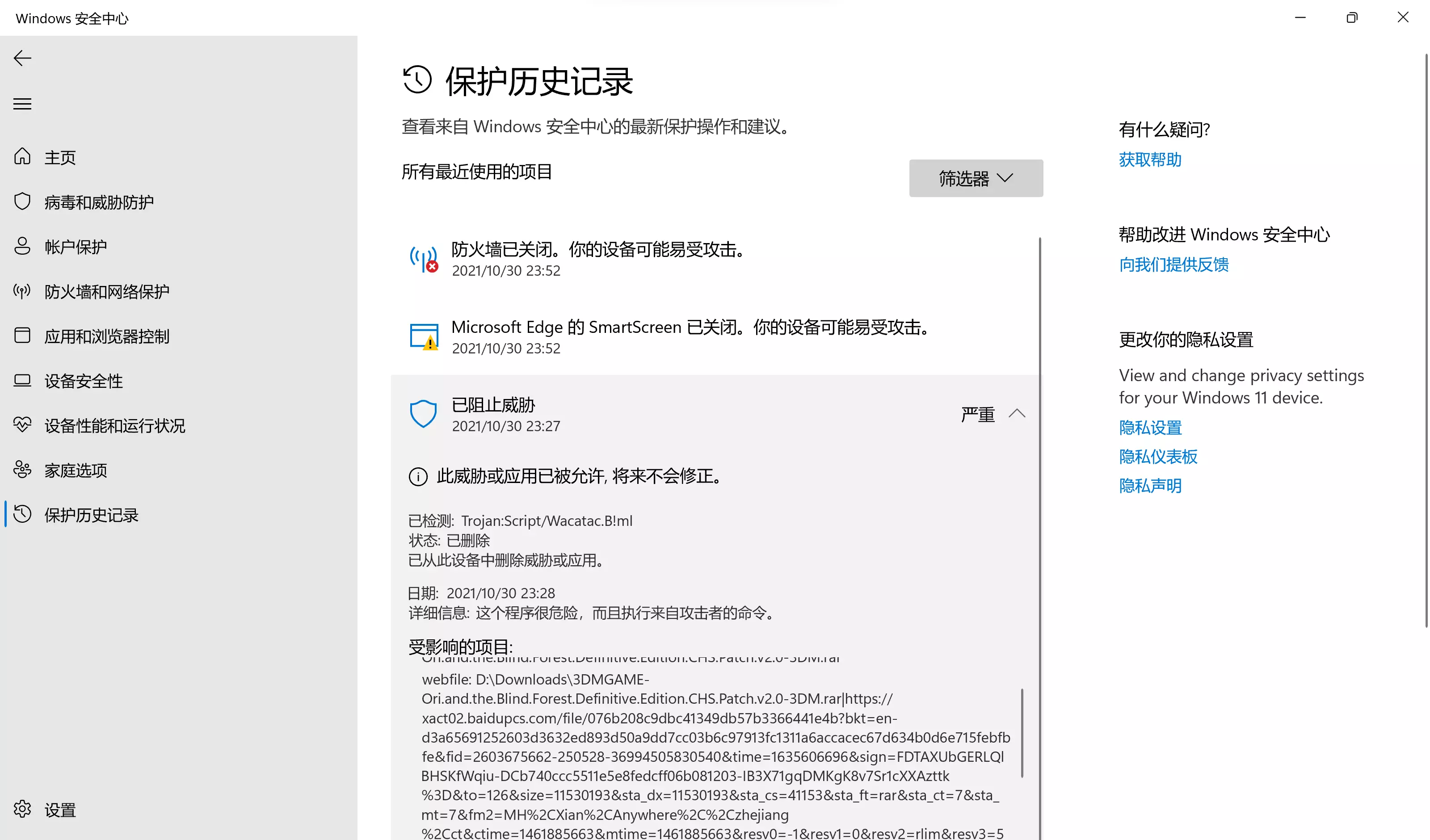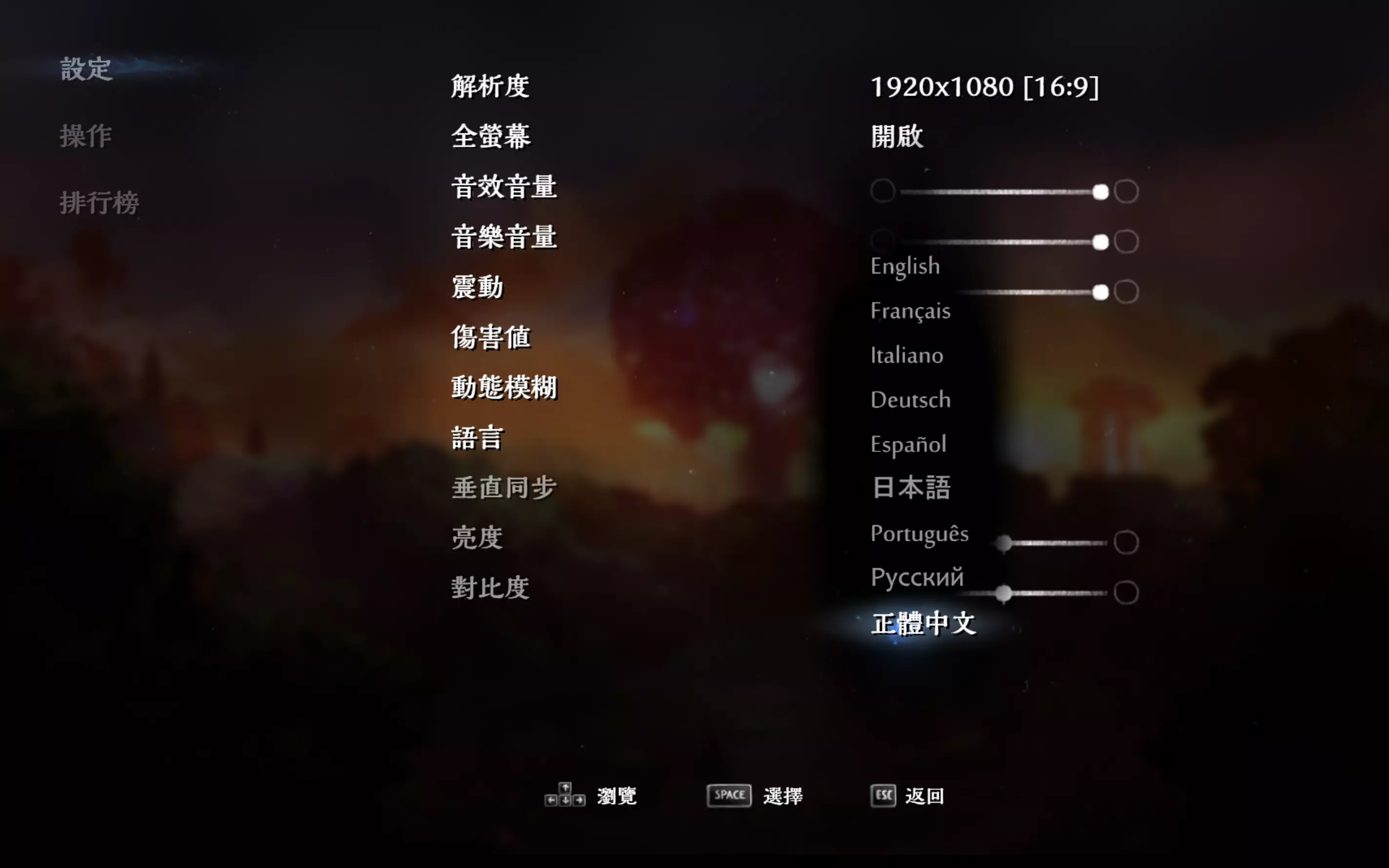 6. 进入游戏,在设置中选择中文 如果浏览器/防火墙/防毒软件提示有病毒:可以尝试使用其他浏览器下载、关闭防毒软件、关闭防火墙、到系统的保护历史记录允许威胁。