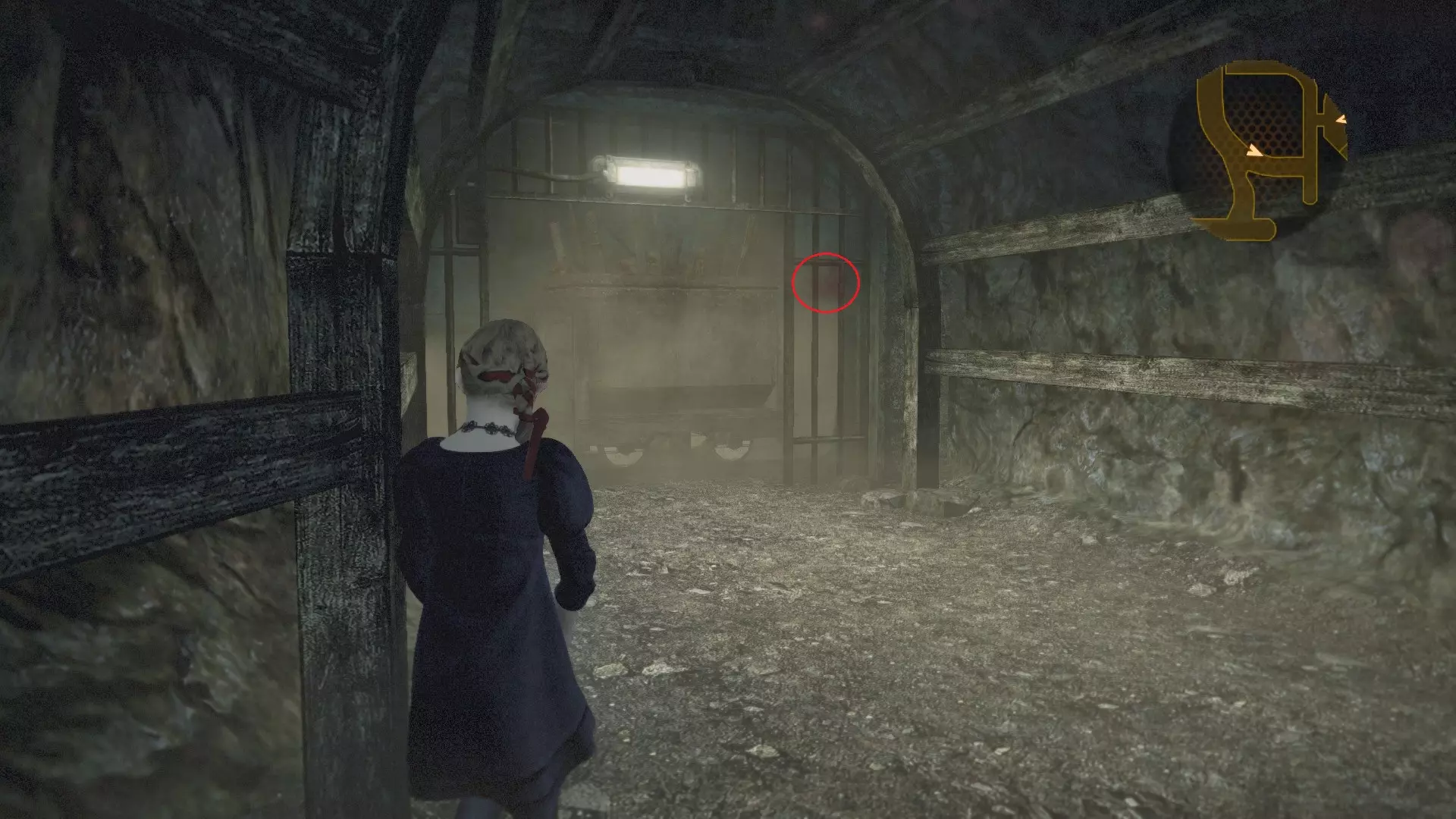 塔楼徽章(7/10):乘坐电梯下到矿井底部,检查其中一个支柱。