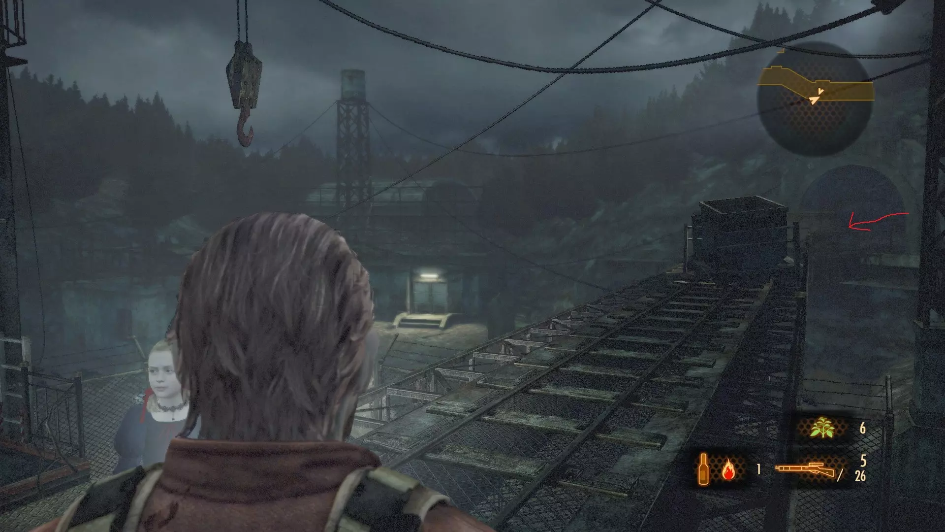 塔之徽章(11/11):往前走一小段,不要上铁路,检查被毁建筑的支撑物。
