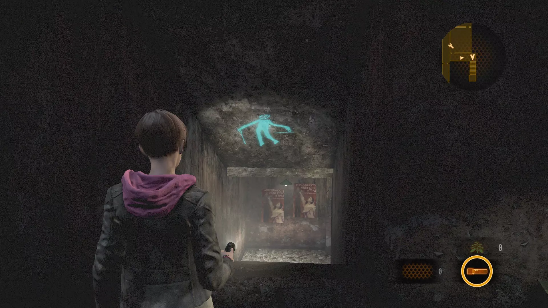 卡夫卡画像(5/6):遇到娜塔莉亚后跟随她进入建筑,下楼前往停尸间。清除停尸间内的敌人后,前往下一个房间,在楼梯右侧的墙上照亮画像。