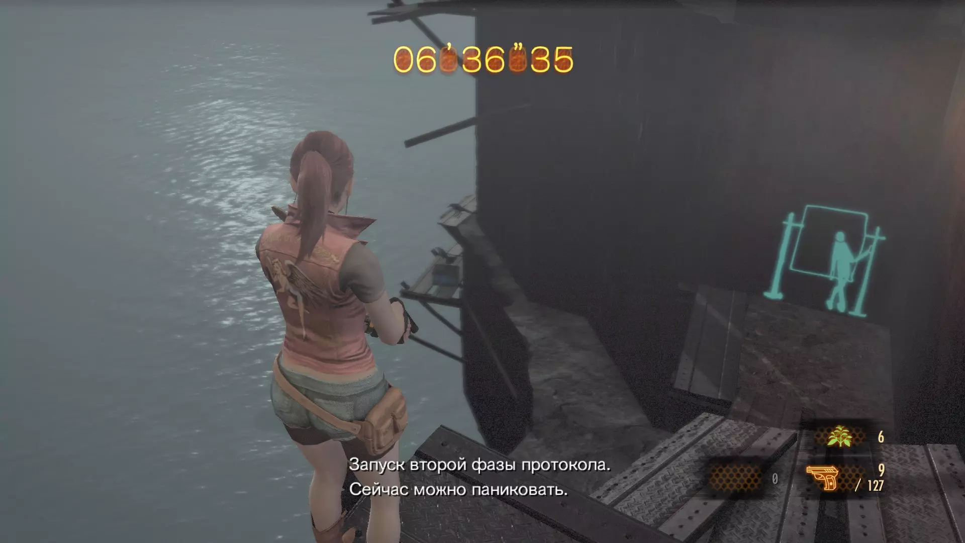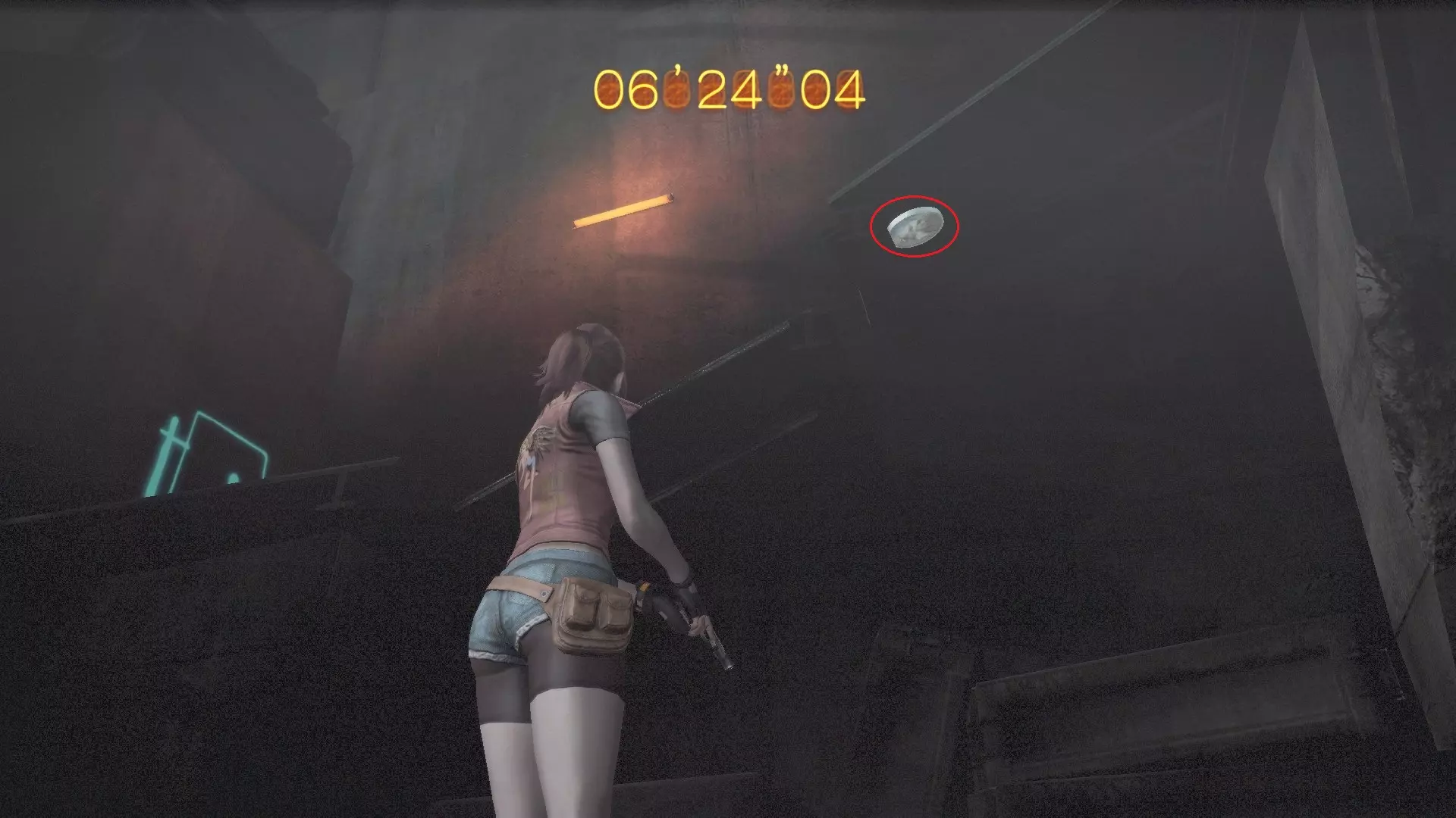 徽章塔(4/11):到达带有自毁计时器的车间,在左侧墙壁上击碎徽章。