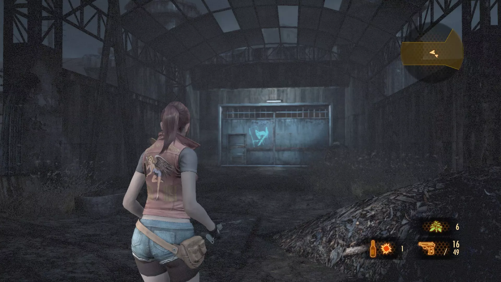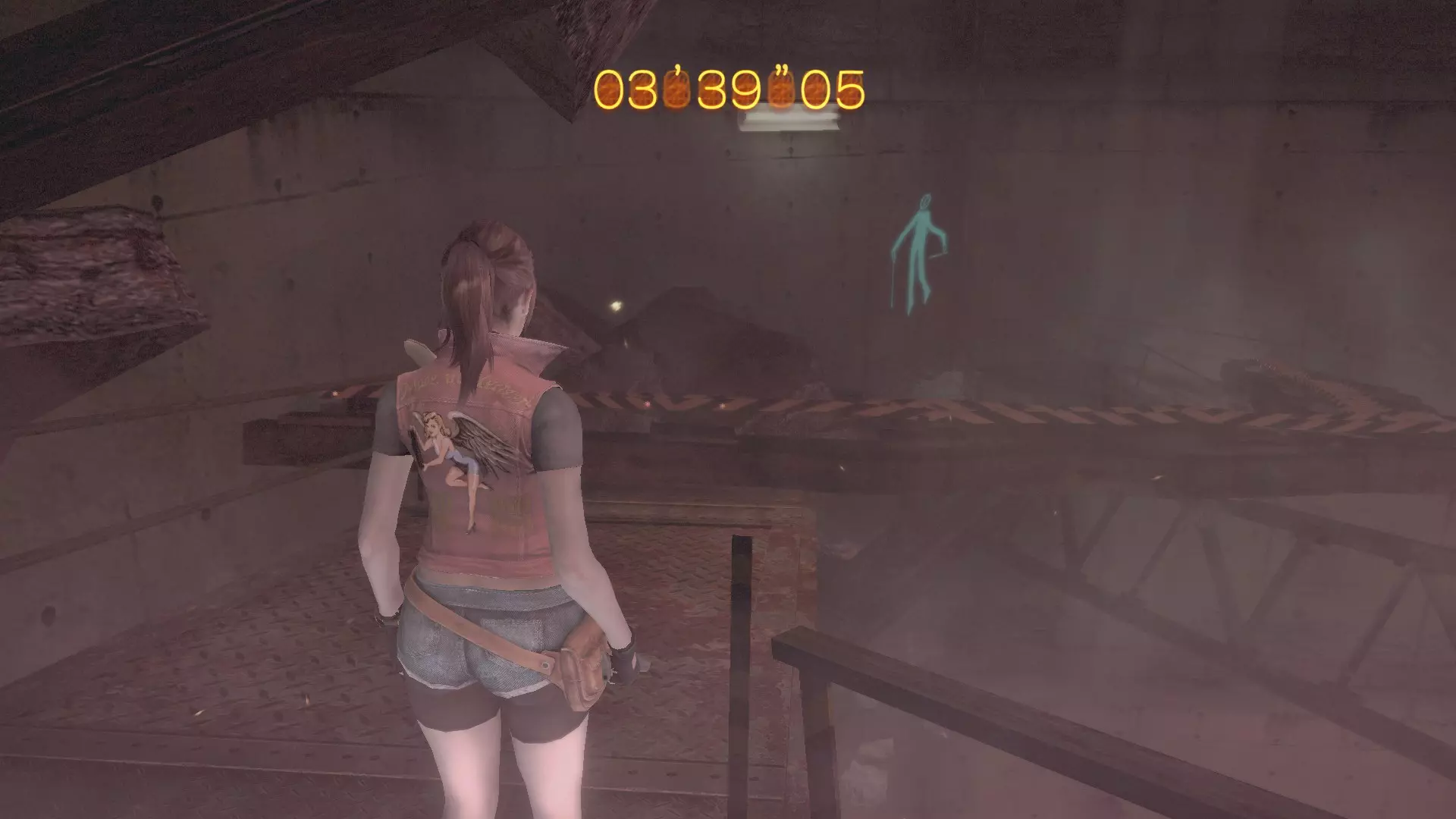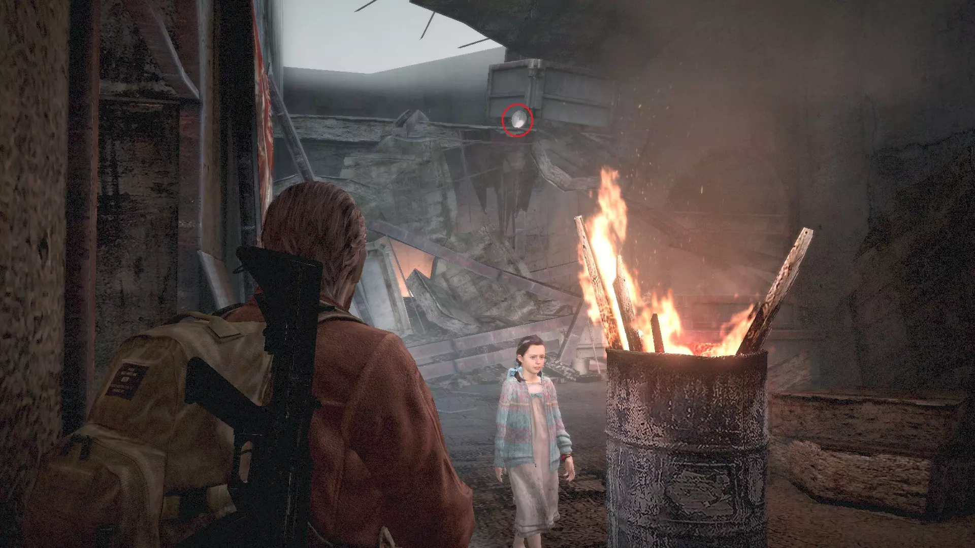 接下来是一个重要的环节,为此我让你们保留了约115发子弹。如果你们击杀了变异的佩德罗,那么之后巴里就能拿到钻机,打开通往其中一个收集品的通道。在“普通”难度下,佩德罗的生命值约为11000。这是我亲自用伤害为100点的手枪通过连续射击计算出来的。命中109次,每次100伤害,总计10900,但我向上取整了,因为我可能击中了眼睛或头部,这些部位的伤害系数可能大于1.0。 卡夫卡画像(3/6):下到……下水道?你会看到一个有两个桶的楼梯入口。桶后面的墙上有画像。