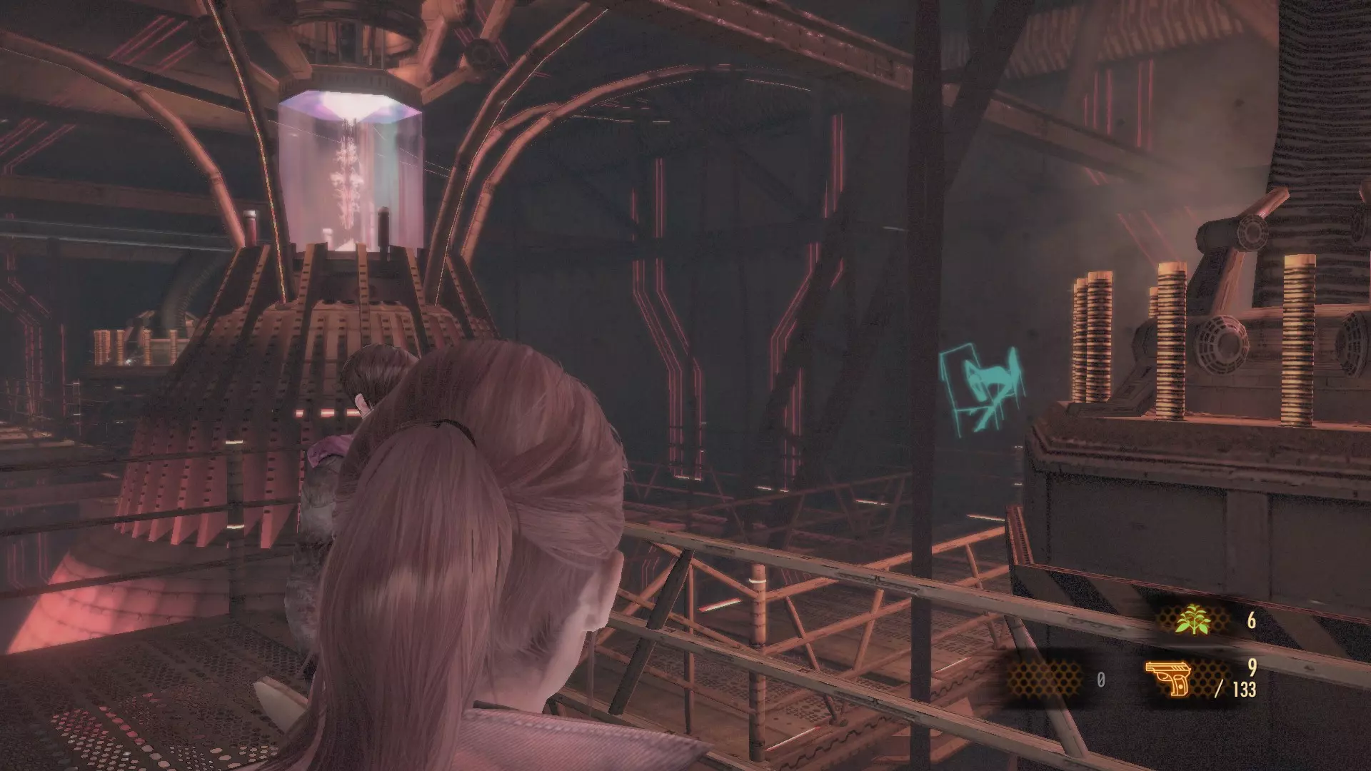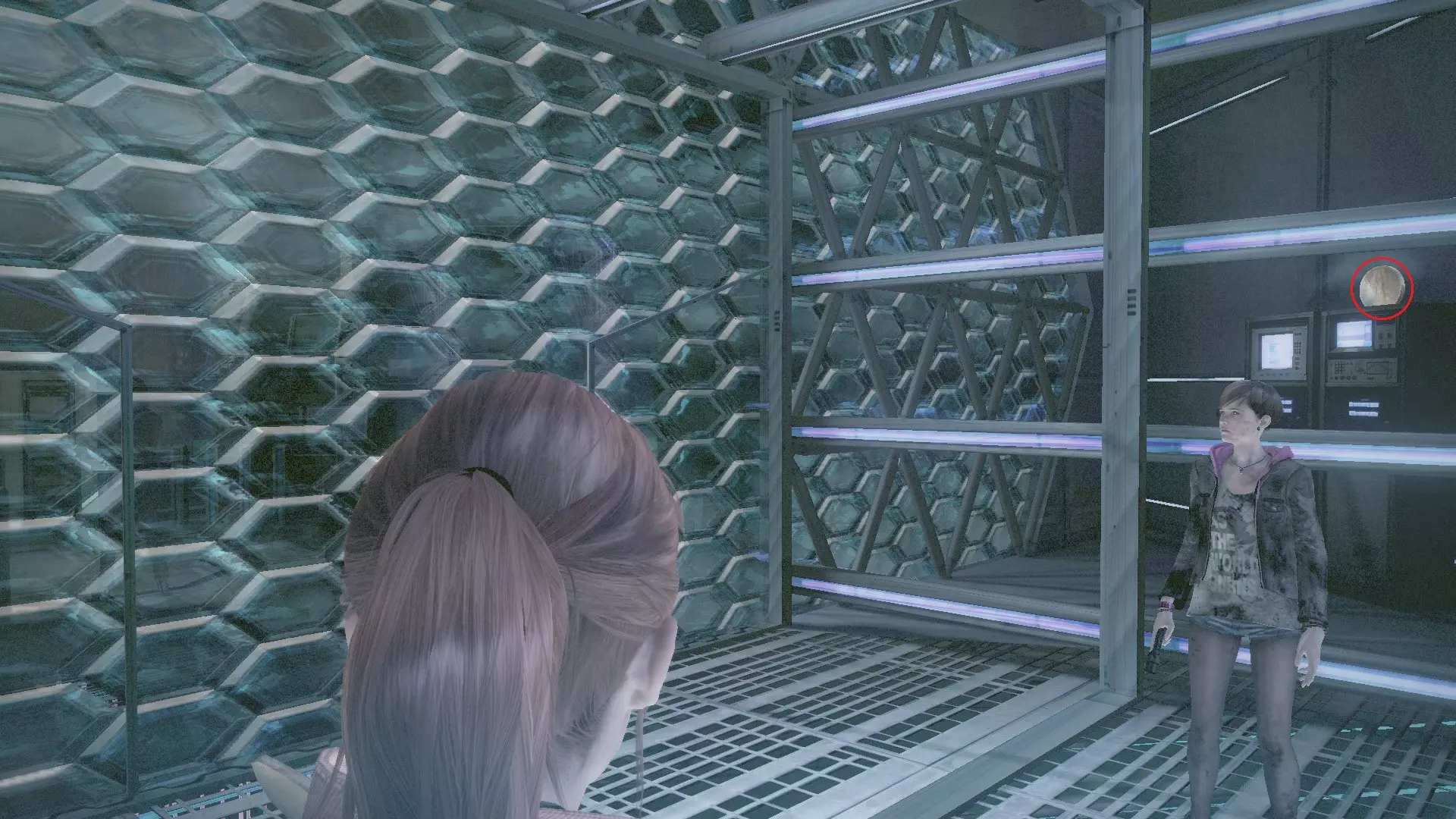 徽章塔(3/8):在有处决机器的房间里,将莫伊拉送到二楼。为克莱尔清理道路后,控制她前往放置莫伊拉的位置。从这个位置射击天花板下的徽章。