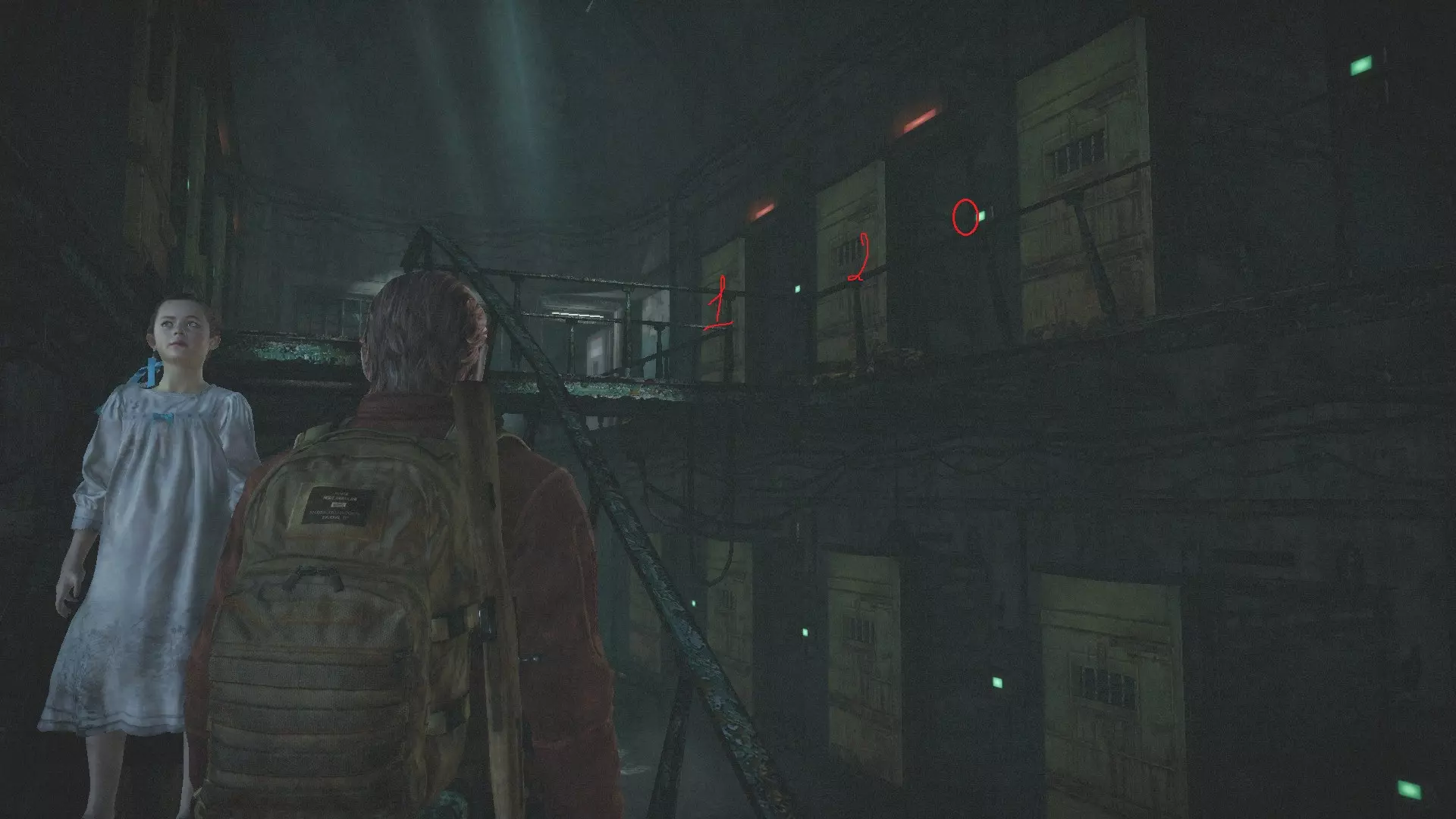 幼虫(3/6):提前拿上砖块,在最里面的房间右侧钻进裂缝。(这条路径是为那些使用克莱尔游玩时,用火焰喷射器抵御大量感染者的玩家准备的)。从台阶跳到格栅上后,不要急着继续跳。在墙上的洞口上方可以找到幼虫。