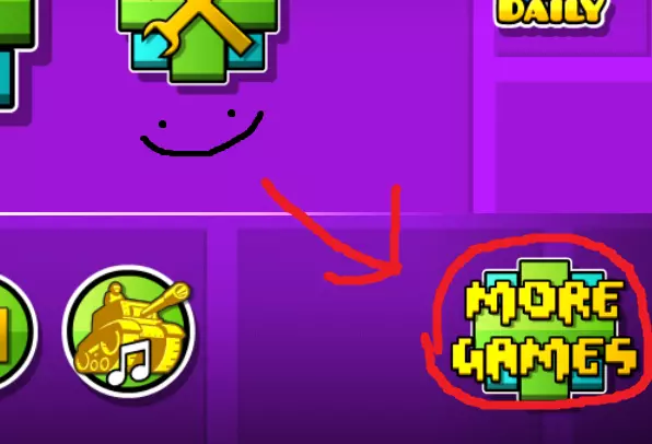 RobTop Gamer(RobTop Games玩家) 在主菜单中点击【更多游戏】按钮