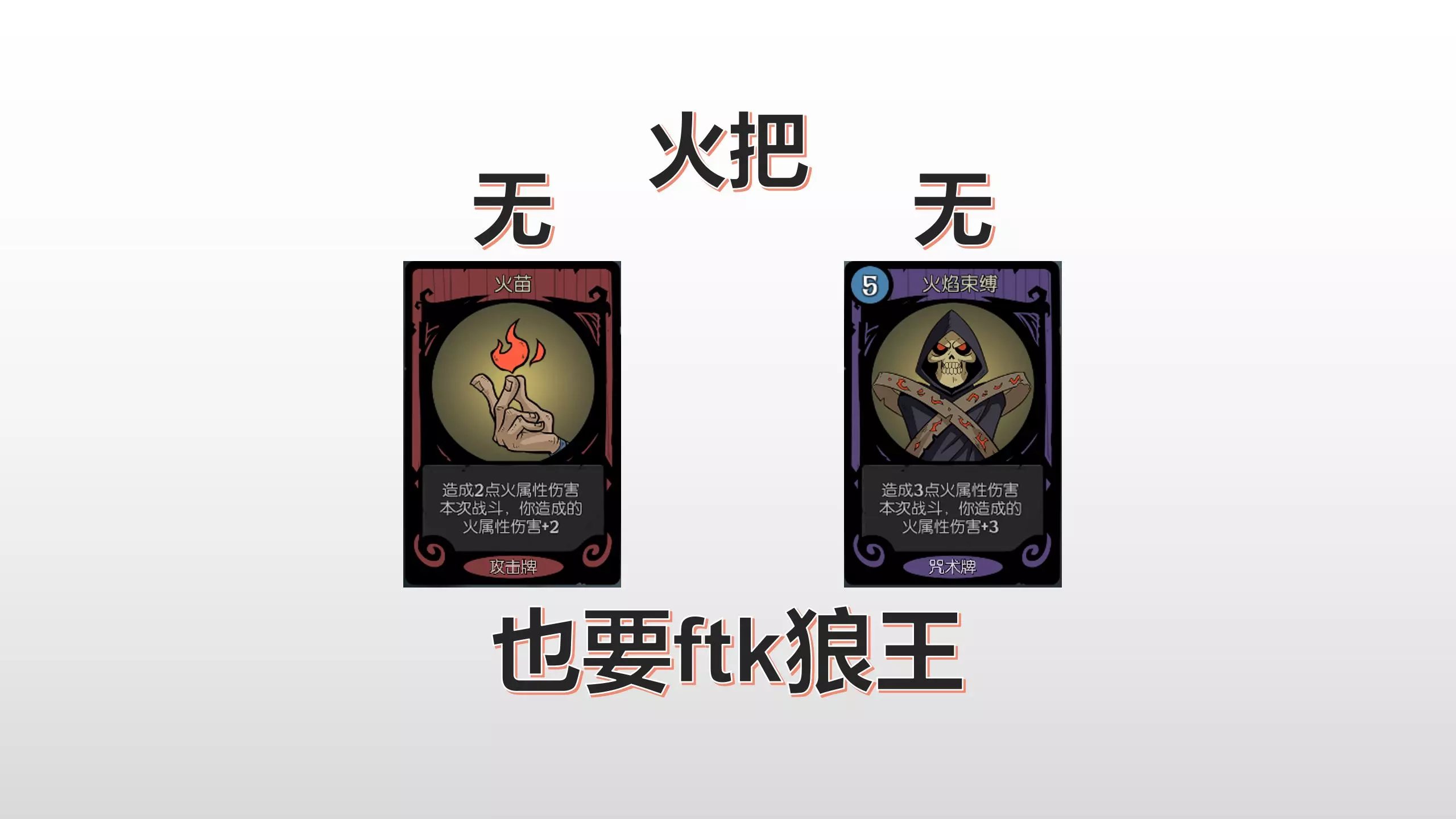 在游戏的大部分时间里,我只装备了魔法杖和飓风法杖,但这已经足以消灭那些倒霉的敌人了。女巫之书的作用相当直观,这里就不多做说明了。魔法杖的效果前面也已经提到过。 来看看飓风法杖为何如此强力: 如果你使用一个简单的法术,比如升级后的火球术(消耗7点魔法值,造成18点伤害),装备飓风法杖后,你会额外获得9点魔法值,而这额外的9点魔法值又能通过魔法杖的被动效果再增加4点伤害。 这还只是一张简单的法术卡。当你看到下面章节中的卡牌时,就会明白我在说什么了。 卡牌 本节将讨论我在这套构筑中最喜欢的卡牌: - 弱者杀手: