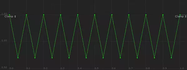 触发滚筒追逐的按钮在不同状态下会关联不同版本的玻璃碎片道具;一种在【开启】状态下使用亮红色立方体贴图,另一种在【关闭】状态下使用深蓝色立方体贴图。Mindhat波纹效果