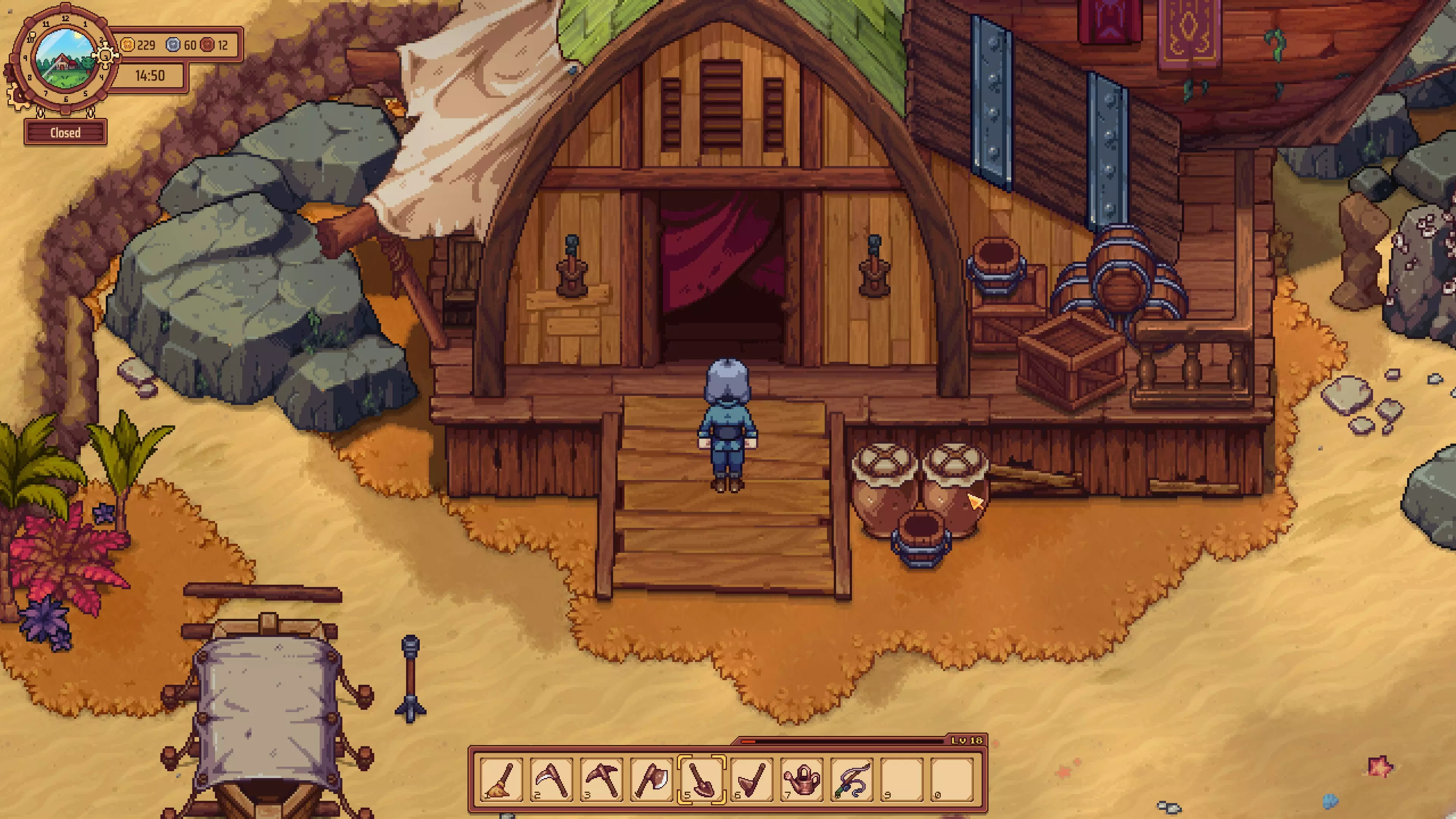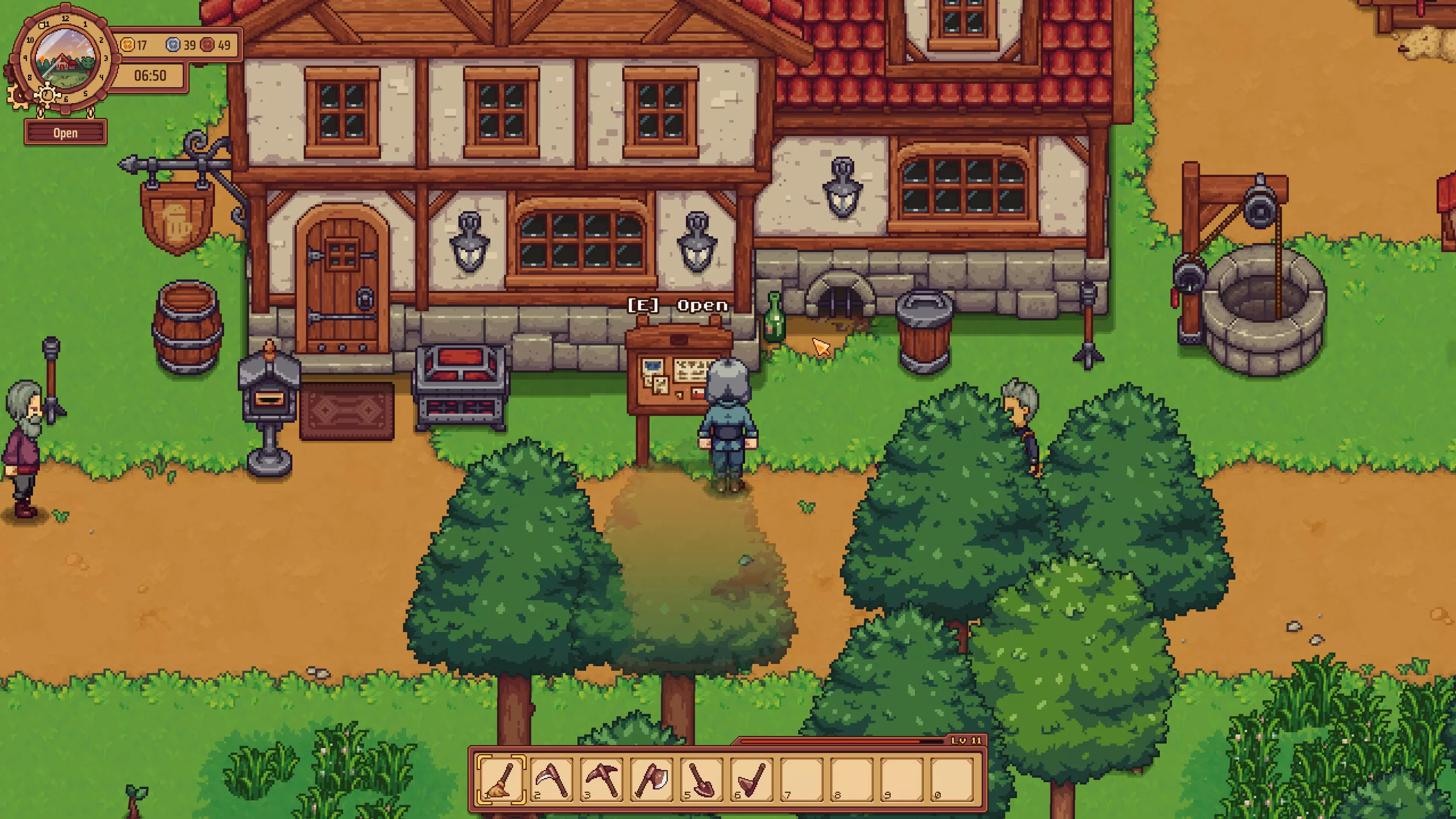 团队合作:雇佣每种类型的员工。 你需要将酒馆的声望等级提升到6级才能解锁员工系统。达到6级后,你需要从酒馆外布告栏上的四类可用员工中各雇佣一名,分别是调酒师、服务员、保镖和清洁工(清洁工需要将声望等级提升到8级并解锁出租房间后才会出现)。 农业相关成就