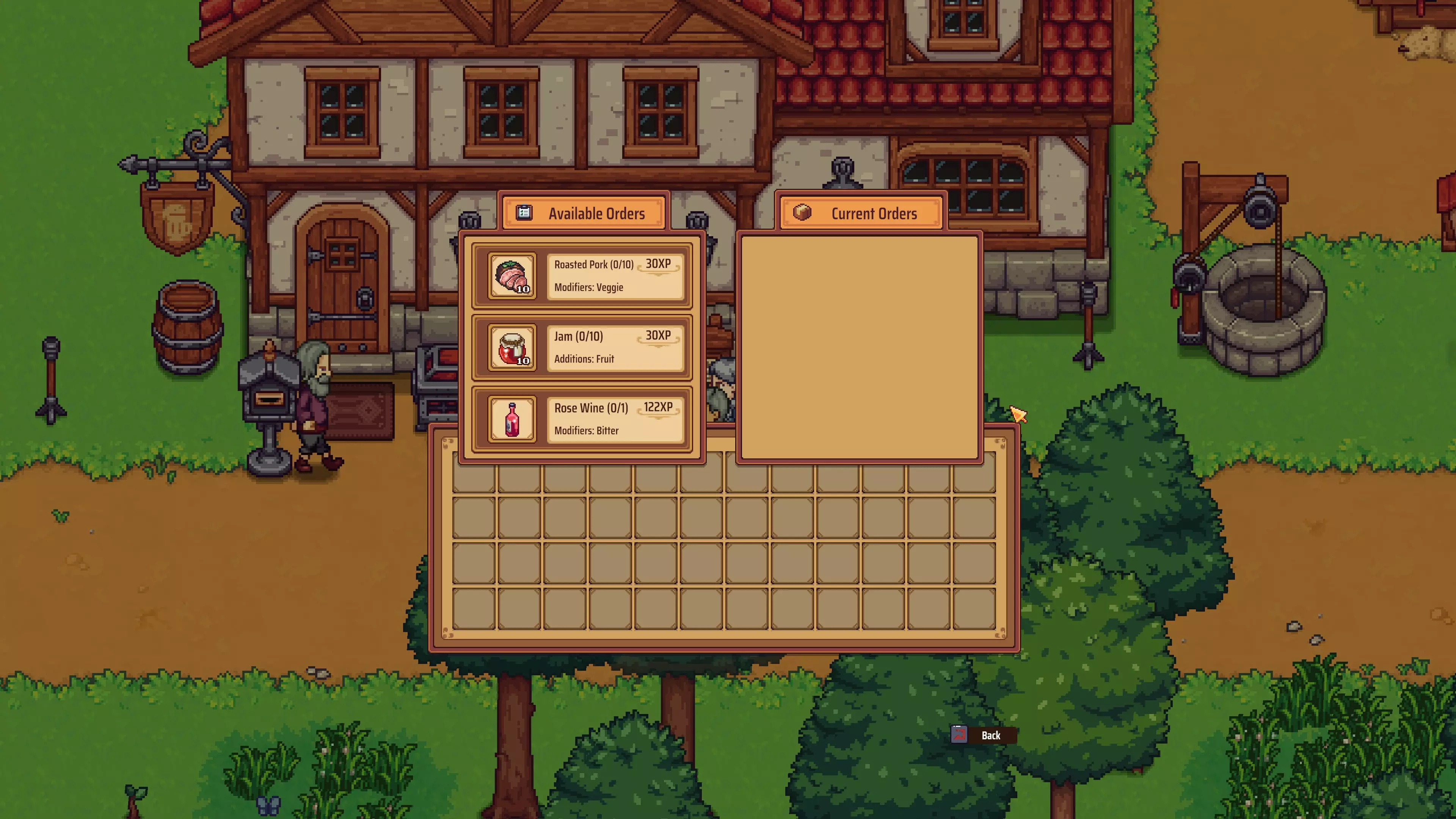 本地供应商:完成20个订单。 当你的酒馆声望等级达到4级时,此功能将解锁。在酒馆外,你会找到一个公告板,上面有三个板块【员工】【日历】和【配送】。每天会刷新三个新的配送请求供你完成(你可以选择不做,但完成它们非常有用)。你需要制作带有指定属性的食物和酒水,然后点击你想完成的配送订单(它会显示在右侧),最后点击你 inventory 中符合订单要求的物品(左键可一次性添加所有,右键可逐个添加)。当达到所需数量后,你可以点击订单进行配送并获取经验值(你可以用经验值购买新技能)。完成20次即可解锁该成就!