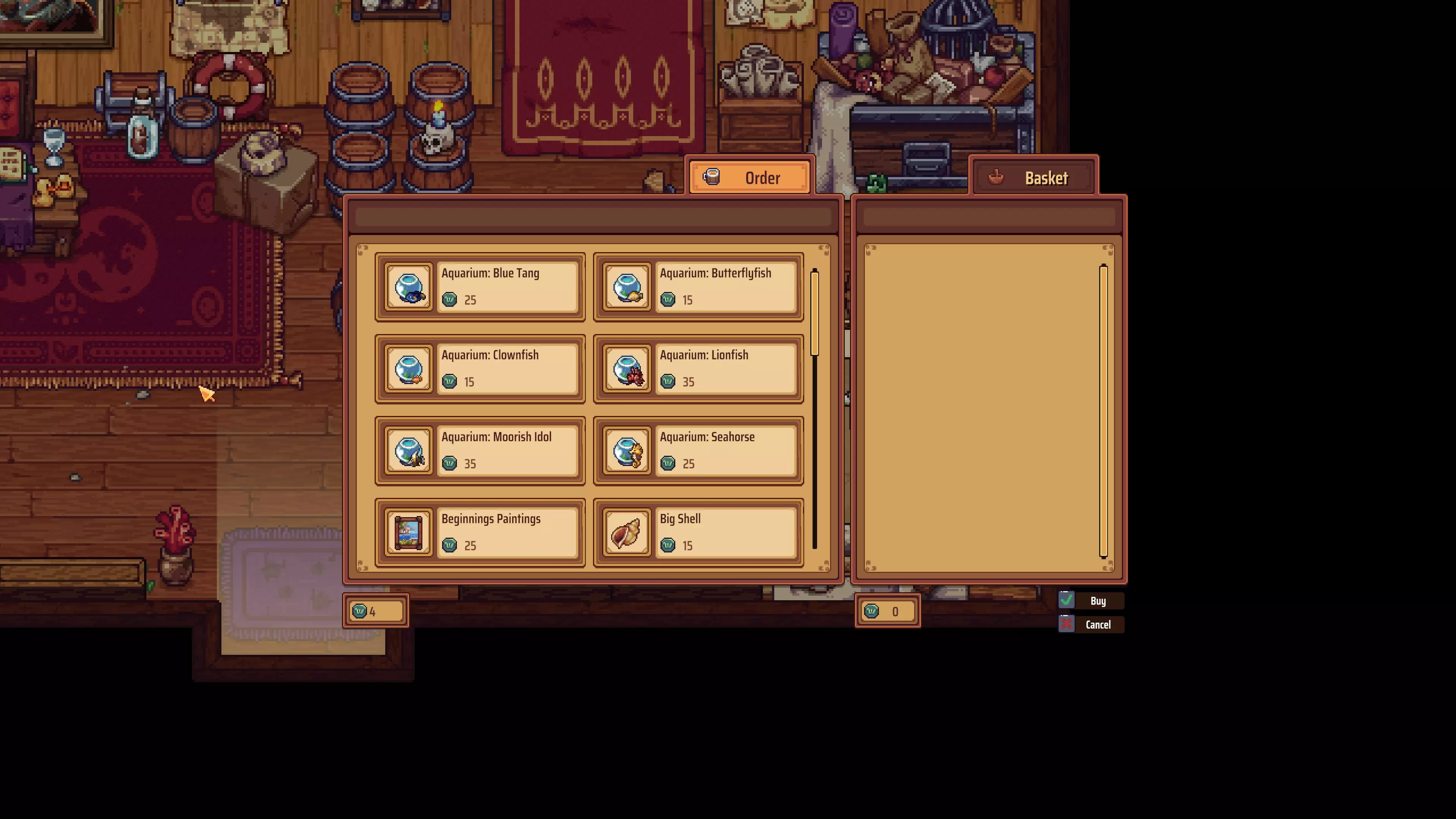 【成就】水族爱好者:获得5个不同的鱼缸。与前一个成就类似,但你需要从威尔逊商店提供的6种鱼缸中购买5种不同的鱼缸。