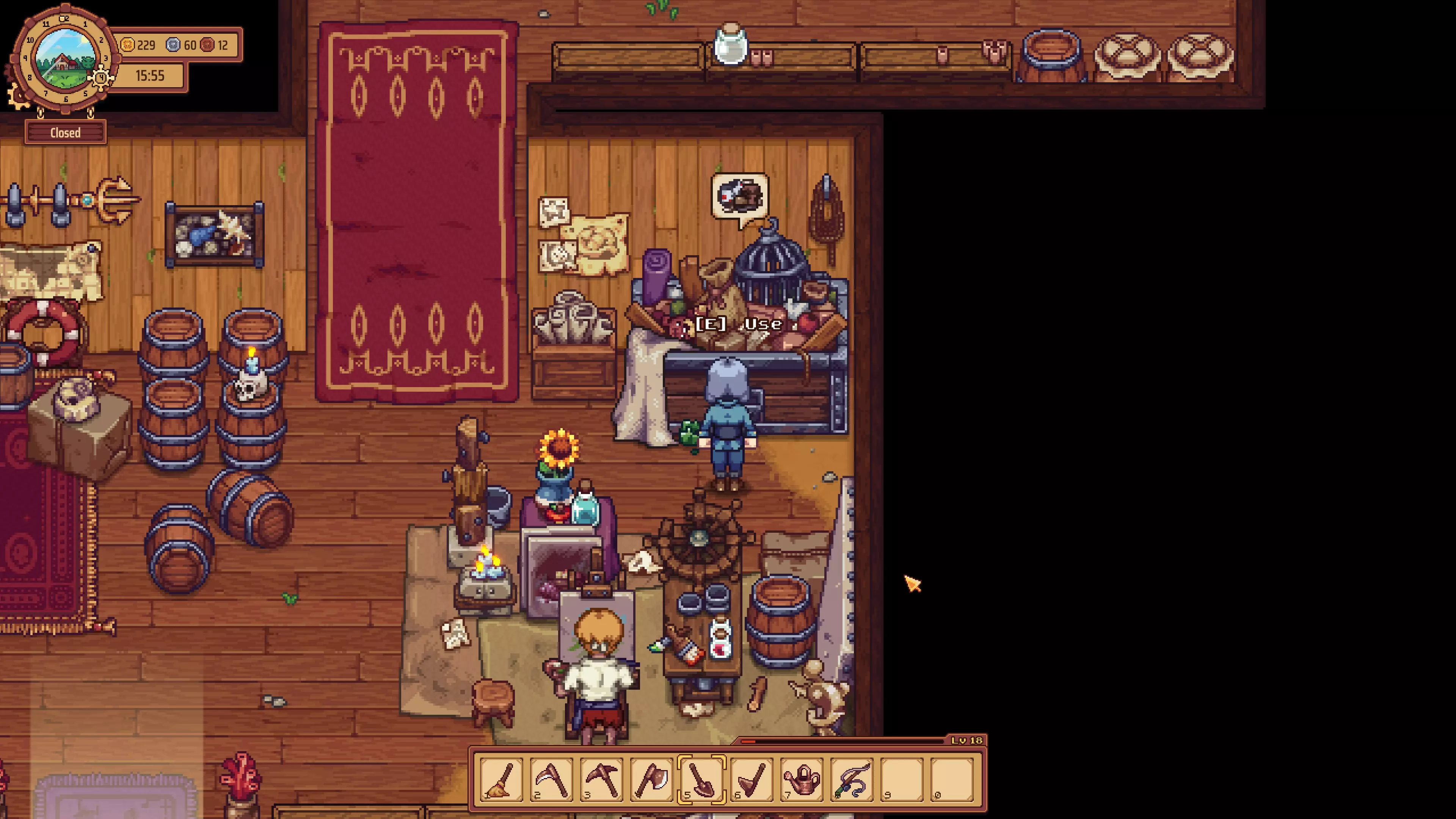 早起的鸟儿:首次将一只鸟的训练等级提升至最高。 之后,你需要留意这只鸟,因为它会随机对顾客说话(可能是正面或负面的);当你看到它说正面的话时,可以靠近它并使用键盘上的E键喂它零食(你从克劳利那里购买的那种)。这会填充一个进度条(你可以在鸟附近按Q键查看),该进度条将决定鸟儿说好坏话的频率。不过,每天只能给鸟喂两次零食,而将其提升到最高等级需要20次零食,因此完成这个过程需要10天。 烹饪与酿造成就