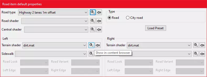 这个简洁的小界面就是用来放置道路的!很有趣吧。 现在如果你想亲自尝试,点击【道路类型】下拉菜单,然后点击你想要道路开始的位置,再点击你想要道路结束的位置。搞定,第一条道路就放置好了。 这里有关于这个菜单的更多信息。