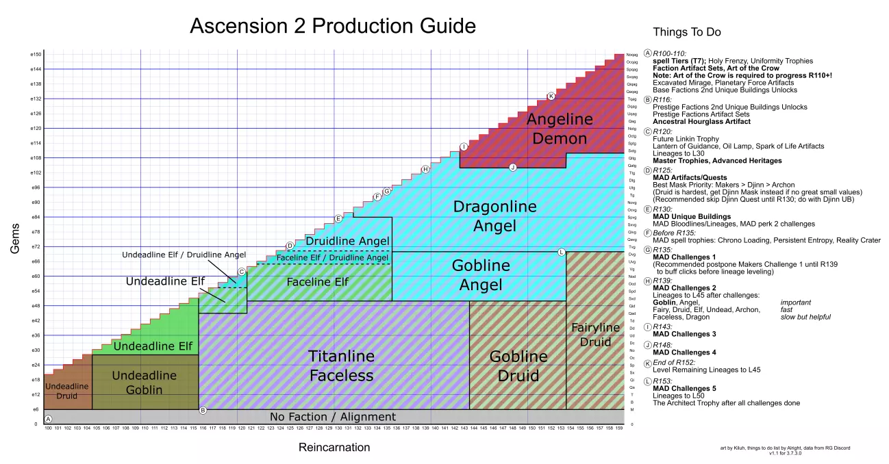 法术等级、巨龙、佣兵研究——天哪(A1-A2) 法术等级和时间 R47-R60 构筑 血脉传承 血脉传承构筑(R60-R75) 佣兵研究 佣兵研究构筑(R75-R99) 血脉传承/挑战/奖杯/增益/佣兵研究解锁构筑(即将淘汰) 奖杯指南 R90+ A2 资源 这是相对较新的内容(3.2 - 二次飞升声望派系),因此预计近期会有大量更新。Ascension 2非维基页面 Ascension 2配装(R100-R110) Ascension 2 prestige配装(R116-R125) 精英派系配装(R125-R135) 精英挑战配装(R135-R159) Kiluh与Alright制作的A2剧情(已过时)