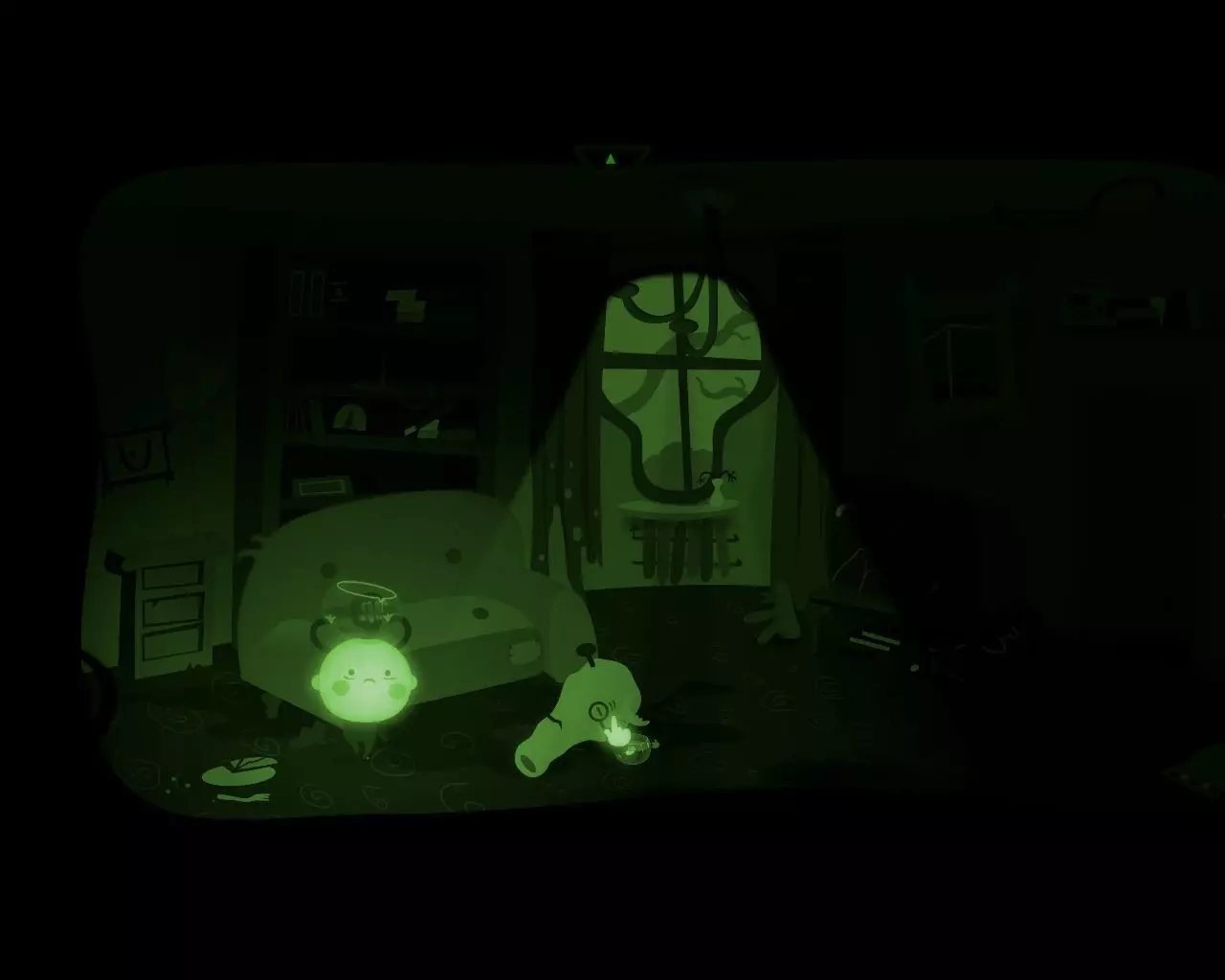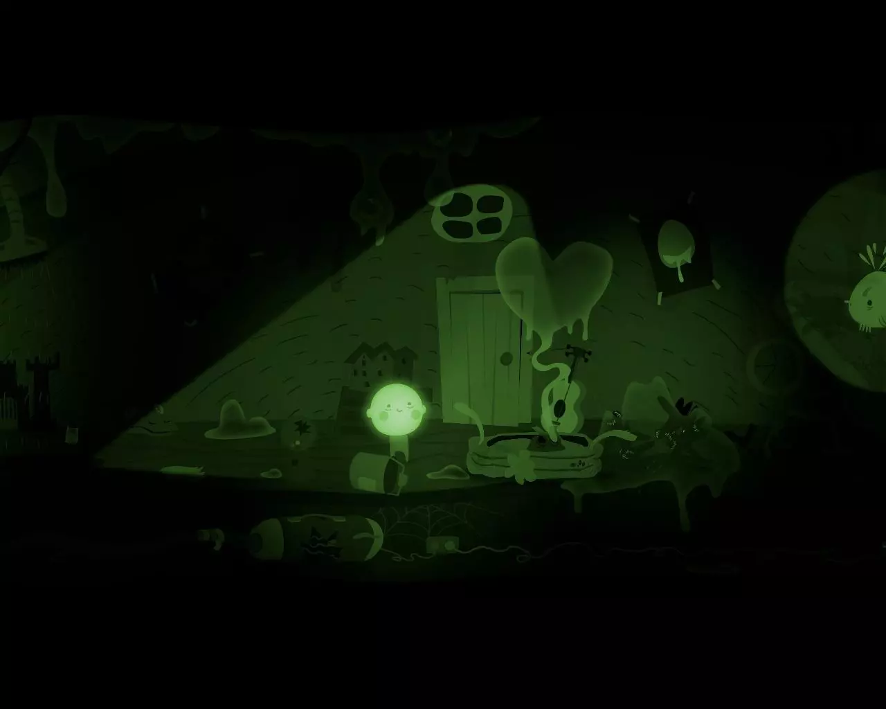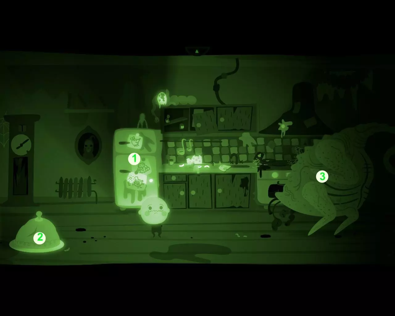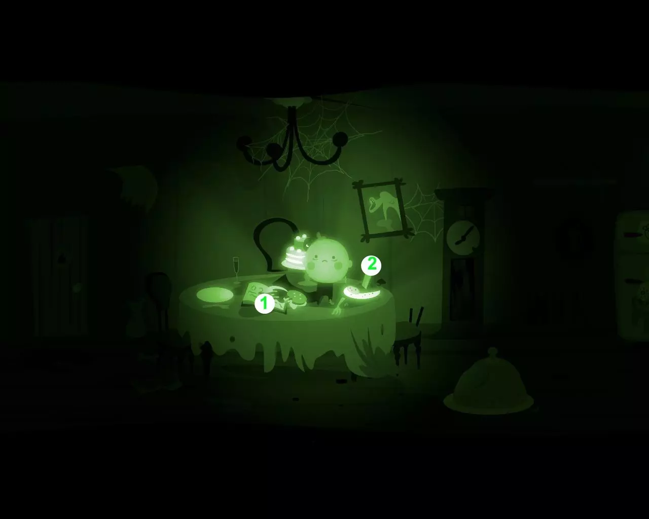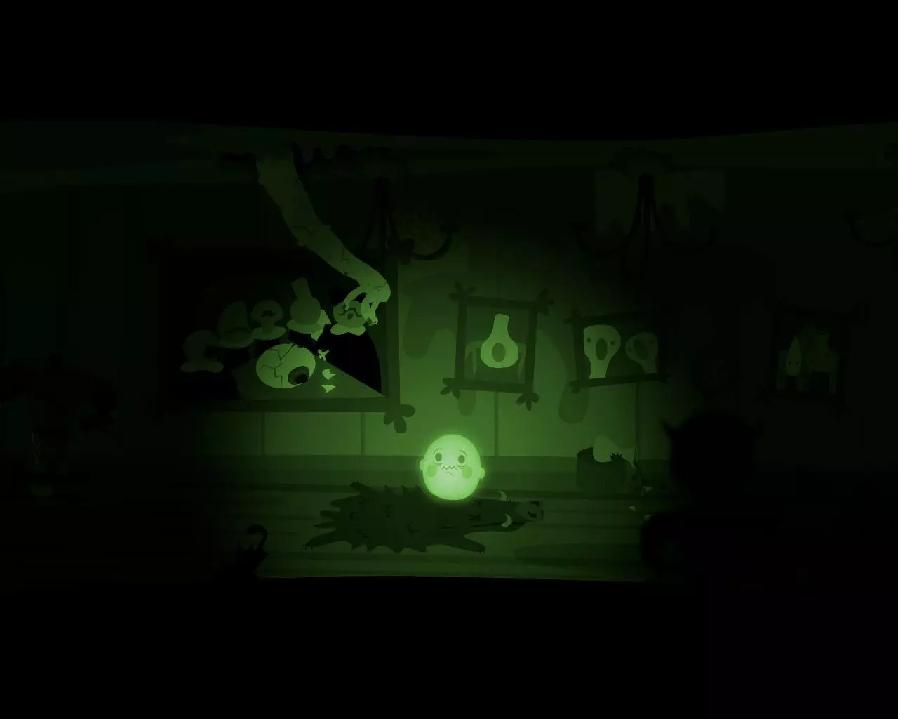 一条不知从何而来的巨大手臂挡住了穿过走廊的路。 点击天花板上的吊灯。 男孩的脑袋(灯泡)会与身体分离并挂在吊灯上。 抓住吊灯向左移动。