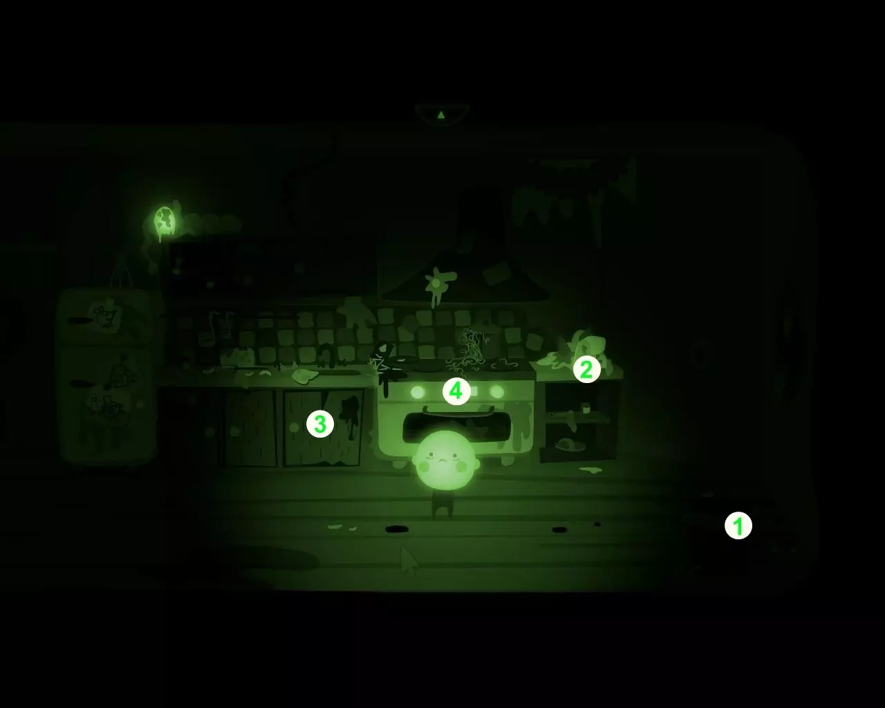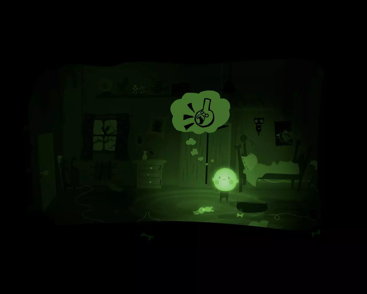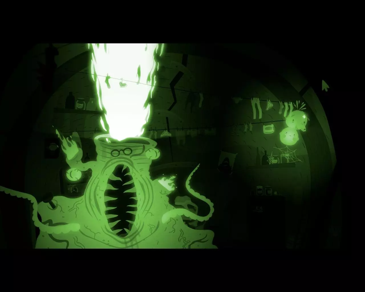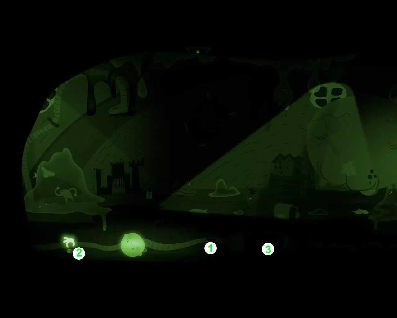 一条不知从何而来的巨大手臂挡住了穿过走廊的路。 点击天花板上的吊灯。 男孩的脑袋(灯泡)会与身体分离并挂在吊灯上。 抓住吊灯向左移动。