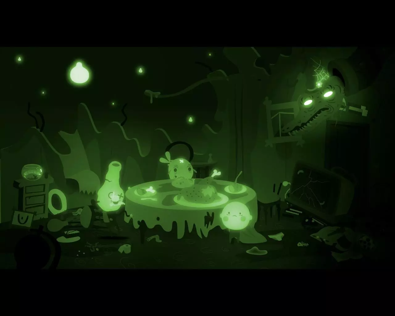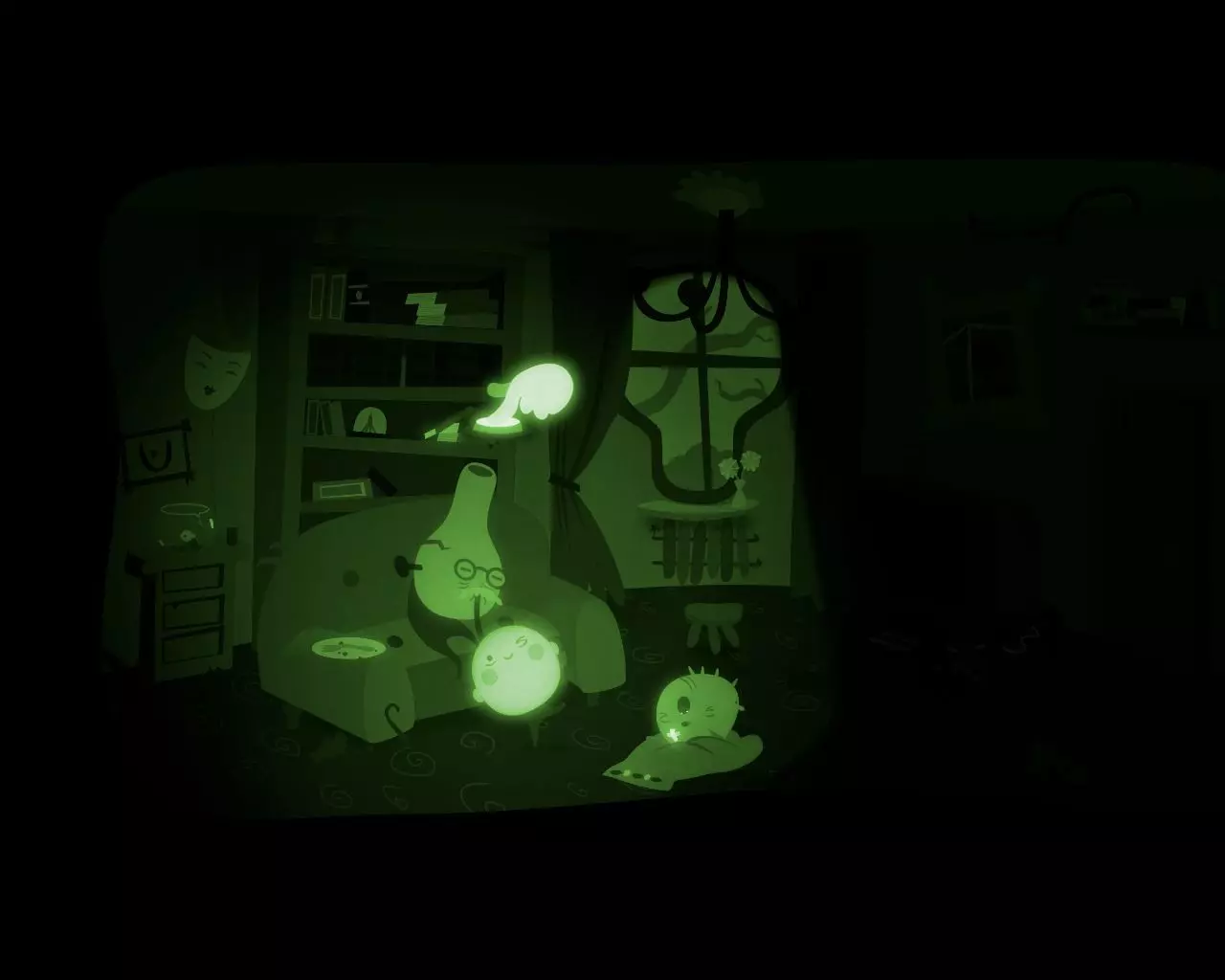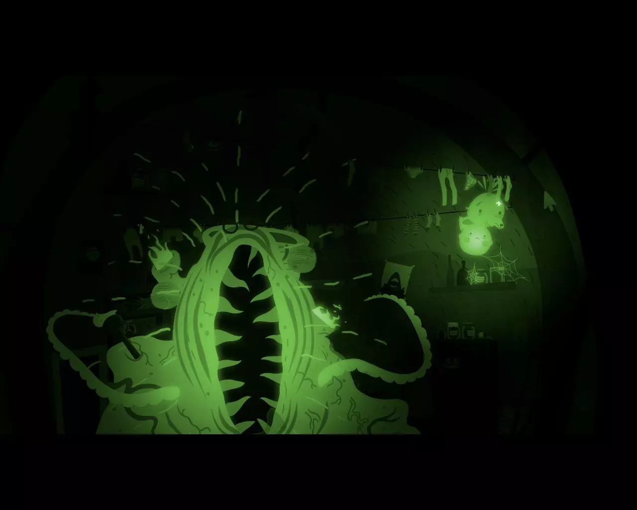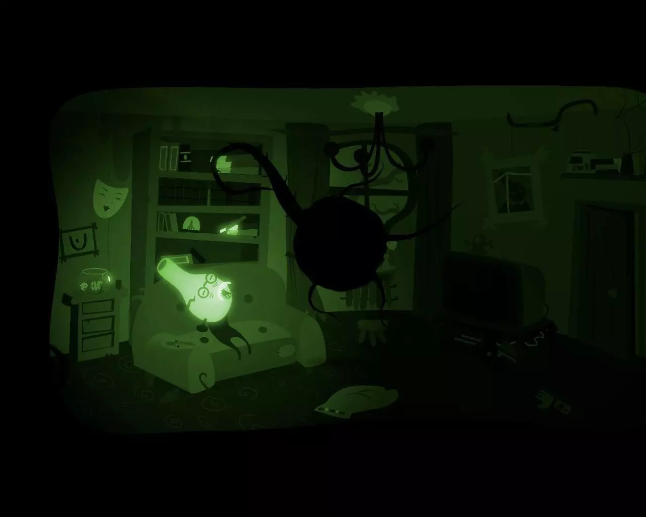 一团黑色的球状物质从窗户飞进了爷爷睡觉的房间。 卧室 贪吃蜘蛛