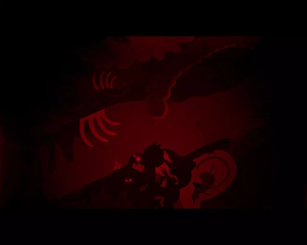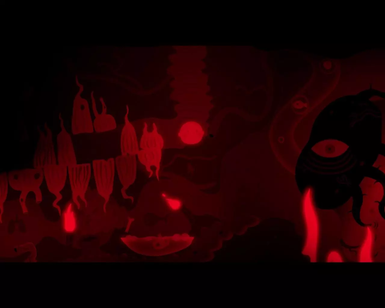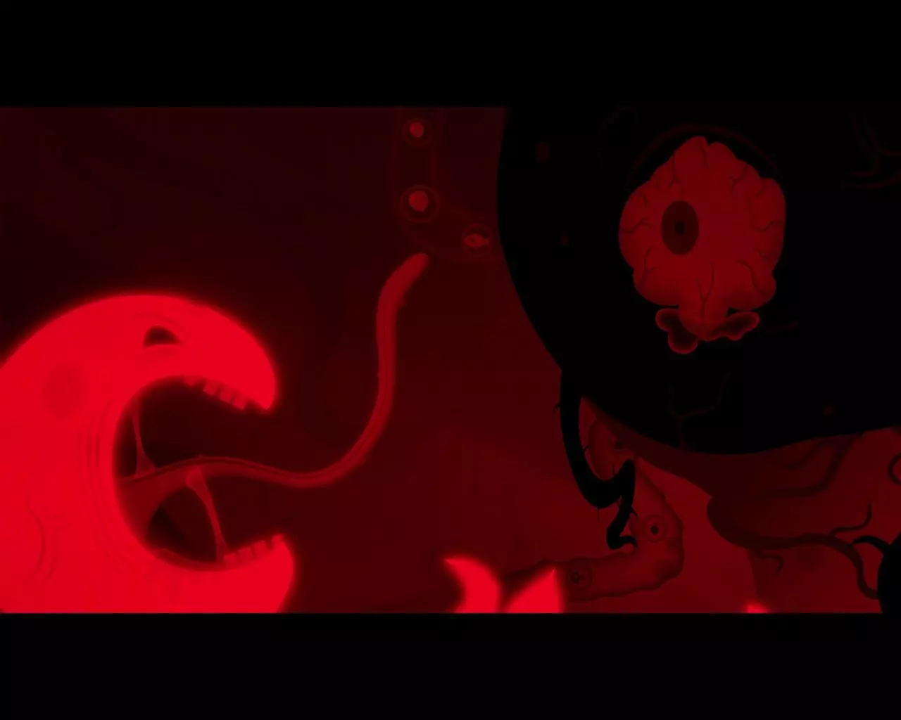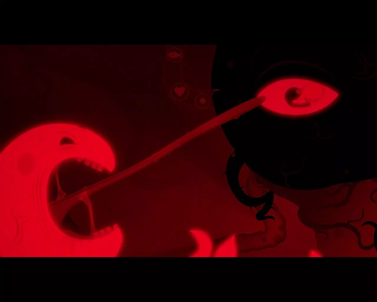 与触手互动。进入房间后,躲避怪物的攻击,该怪物会交替使用三次火焰攻击和一次吸附攻击。经过两轮攻击序列后,怪物会再次入睡。按下杠杆,进入怪物的内部。 当右侧第一颗牙齿升起时,站到它下方。然后依次移动到以下牙齿下方(从右向左):第三颗、第四颗、第五颗、第六颗、第八颗。向下走,进入右侧心形的门。深入怪物的核心