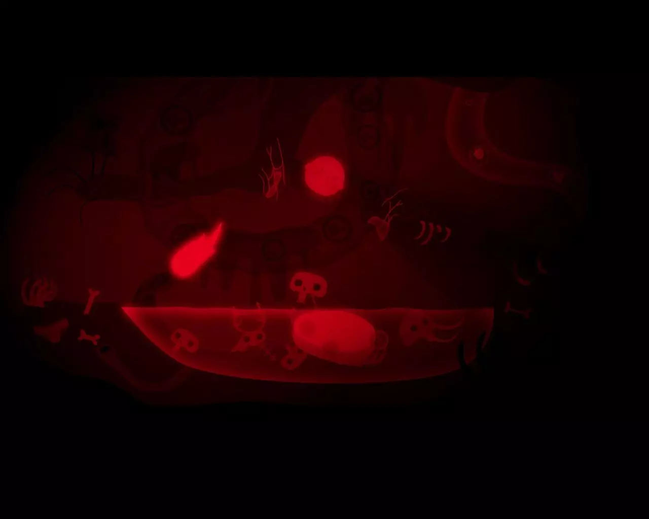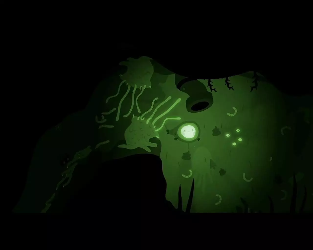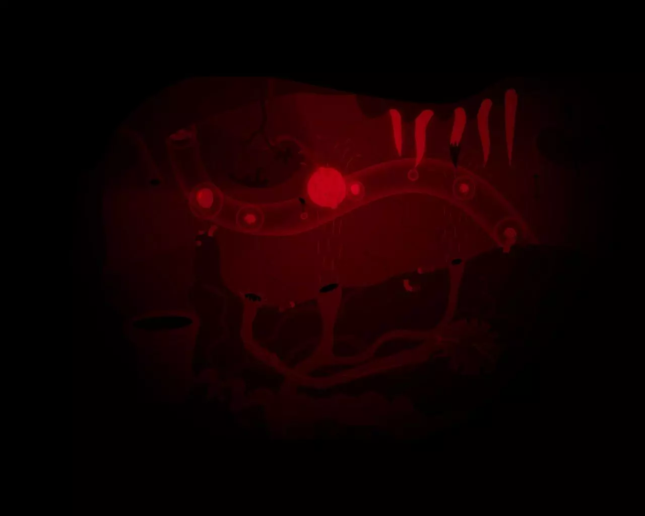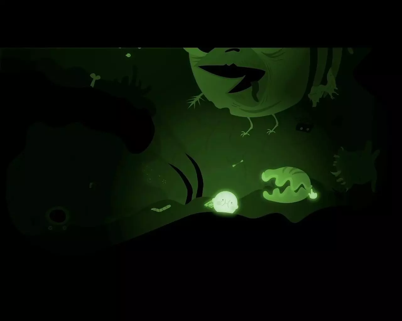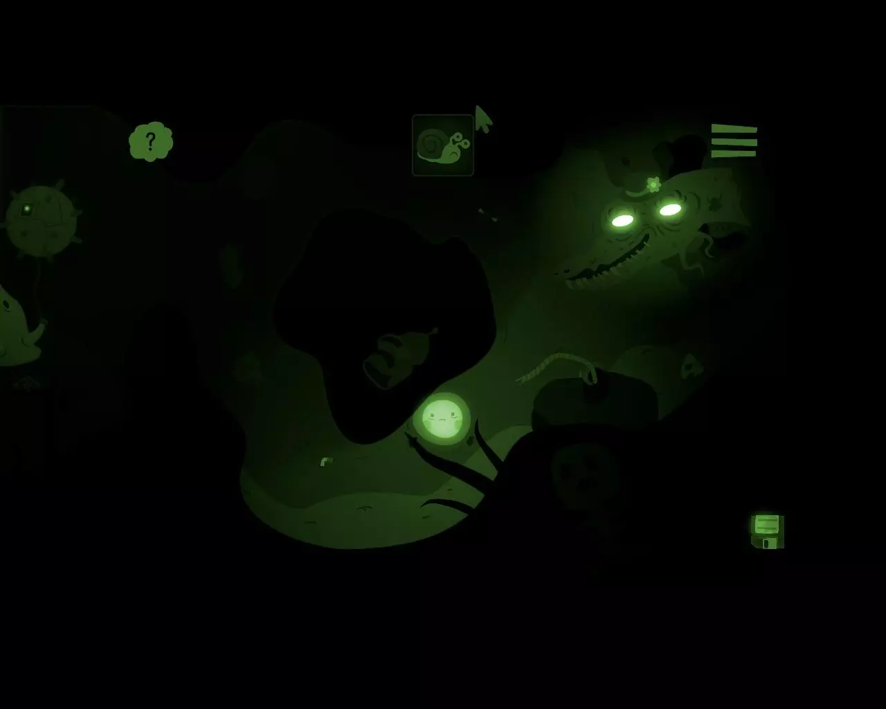 带领一群蠕虫前进。快速向上游,穿过一排排食肉植物。到达出口时要确保甩掉了所有蠕虫(如果还剩下哪怕一只小蠕虫,就再从植物旁边游过去一次)。向右游。
