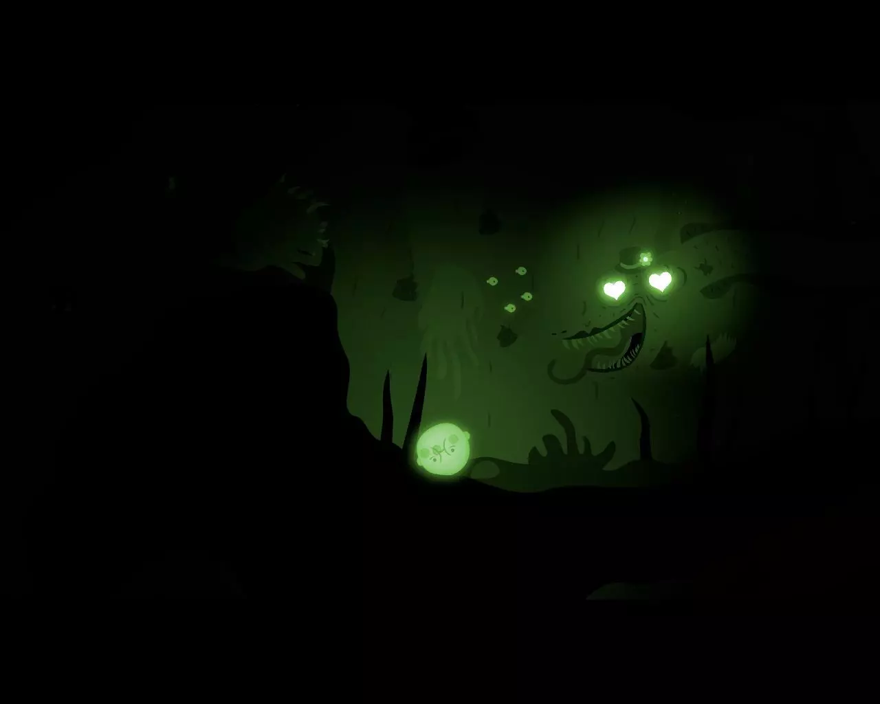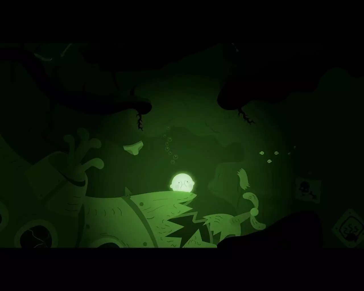 引诱下一条虫子来追我们,然后我们躲进贝壳里。 植物吃掉虫子。 向左游,进入鱼的身体里。 男孩来到一个临时的潜水钟里。 回到潜艇,向下潜,到危险标志下面。