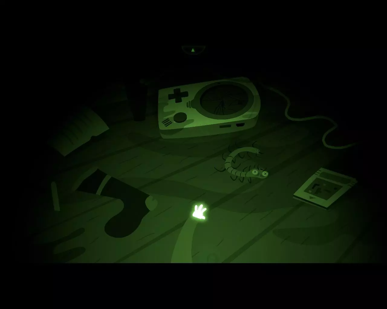 当天花板上出现手(头部灯泡与能在地面自行移动的身体连接起来)时,跳到地面上。