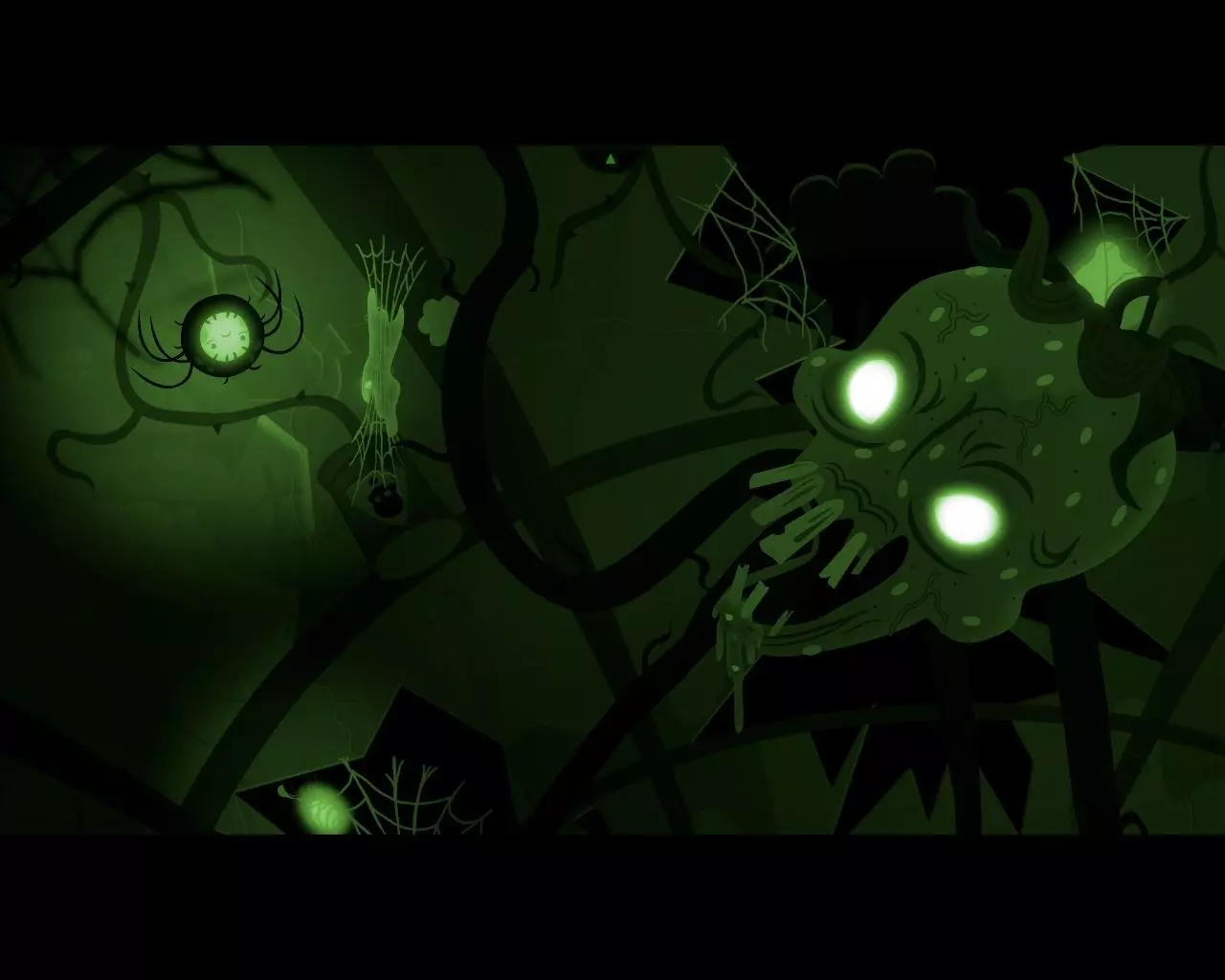 男孩被一声响亮的求救声惊醒。 急忙走向门口想要离开房间,却被一只饥饿的蜘蛛挡住了去路。要想摆脱蜘蛛,需要给它带来苍蝇、甲虫和毛毛虫。 捕捉苍蝇 苍蝇嗡嗡作响,在天花板下盘旋,徒手无法够到。