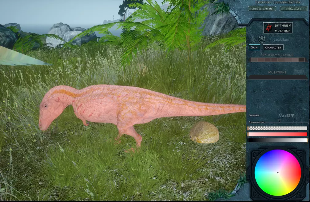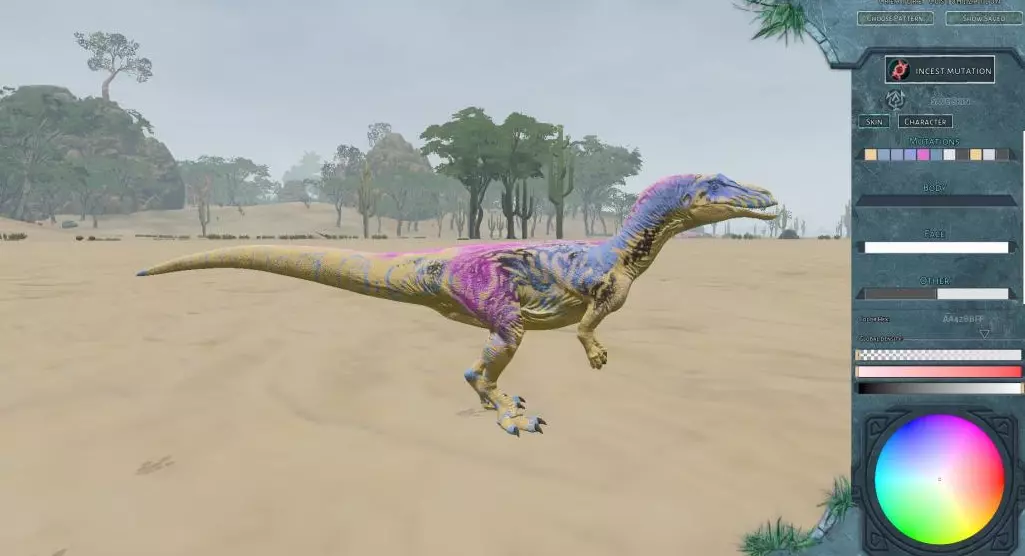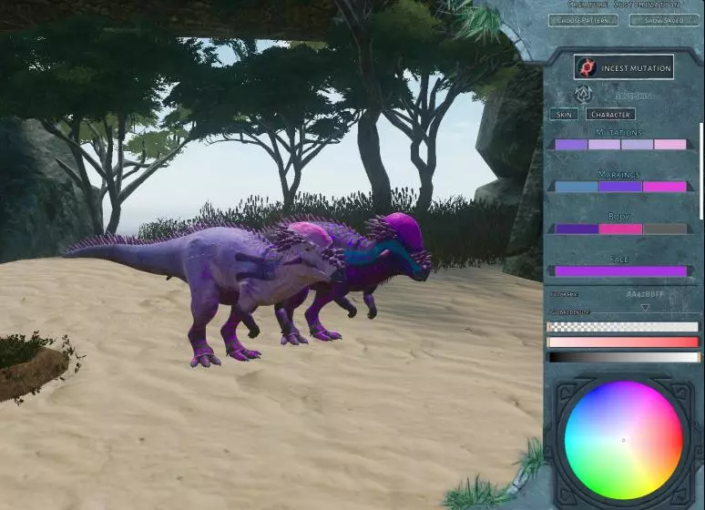 什么是单色?维基百科称:单色或单色调的图像、物体或调色板由一种颜色组成。 百慕大野兽的解读:一只单色恐龙!这是怎么回事? (随机颜色后,相关恐龙将只由所选颜色构成。) 单色orycto