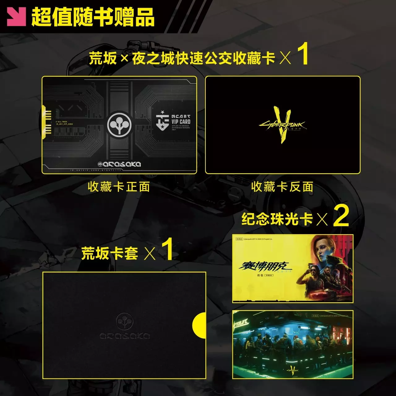 《赛博朋克 2077》全新中文版漫画《赛博朋克 2077:一诺千金》 科幻世界SFW官方旗舰店显示售价: 65.2元,优惠前75.2元 状态: 预售中 作者: 巴尔托什·斯泽波 著,赫苏斯·埃尔瓦斯 绘出版社: 四川美术出版社 开本: 16开 页数: 104 版本类型: 简体中文 出版时间: 2026-01-30 材质: 纸 特典描述: 荒坂×夜之城快速公交收藏卡、卡套、游戏五周年纪念珠光卡