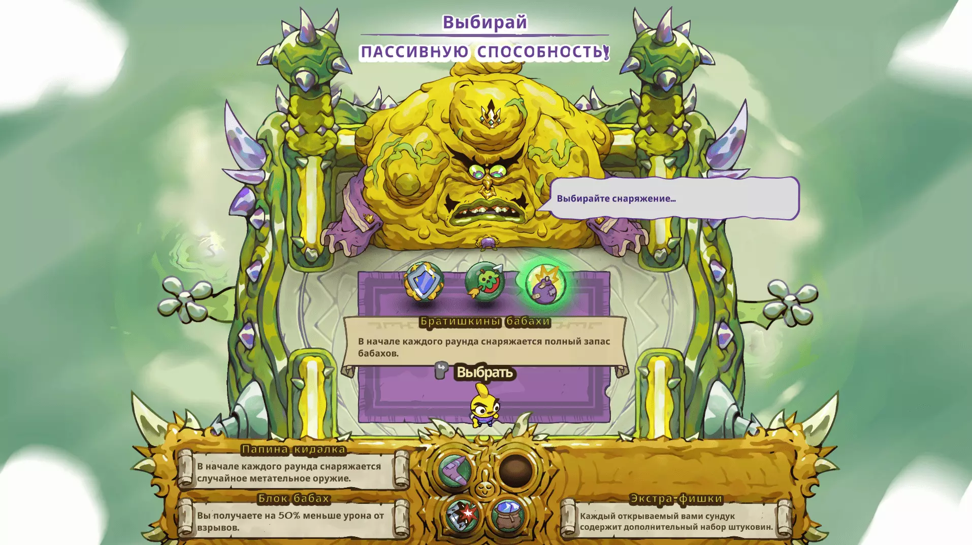 然后在每回合结束后,游戏会让你从三个被动技能中选择一个,这些技能将在后续回合中提供帮助。从截图中可以看出,总共可以获得四个技能。