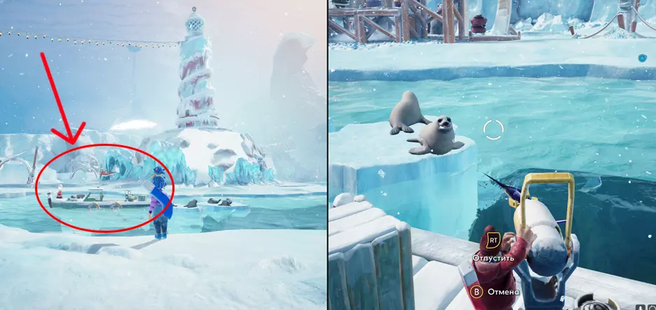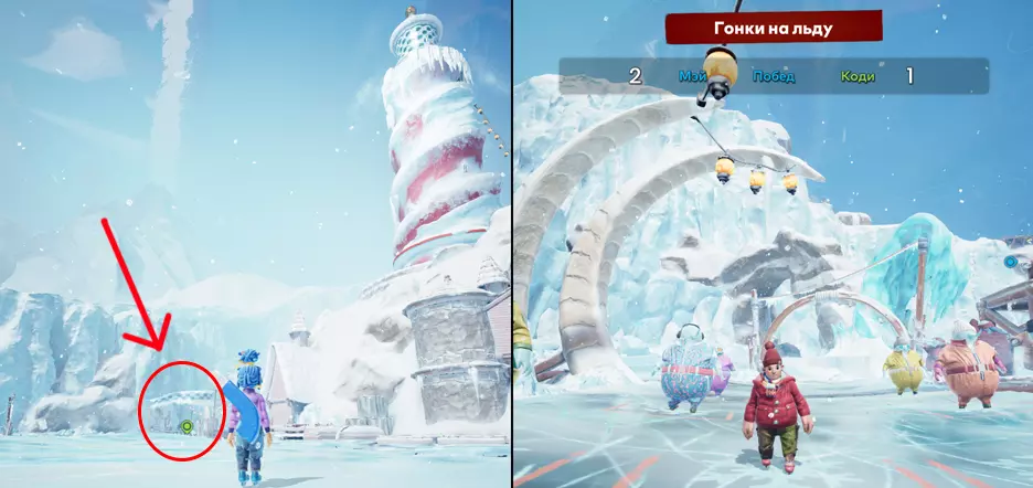 章节:冰盖之下 17. 冰上竞速 当你到达雪人海底基地后,回到地面。你面前会有一个巨大的灯塔!灯塔左侧将有一个迷你游戏。