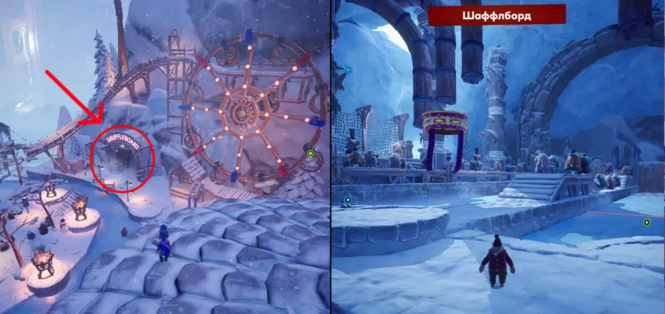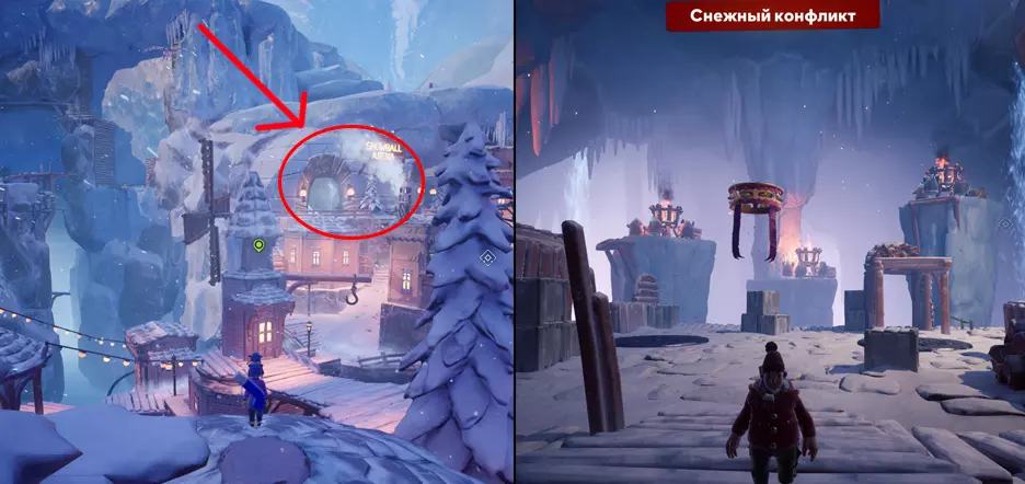 章节:冬日村庄 在这个区域,要找到迷你游戏需要敲响其中一座塔的钟。因此建议先激活所有塔,然后再寻找迷你游戏。 14. 雪地冲突 激活右侧的塔后,会出现一个通往洞穴的通道,迷你游戏就在那里。以有风车的悬崖为参照物,悬崖上方会有猫头鹰飞过。洞穴入口在悬崖的右侧。