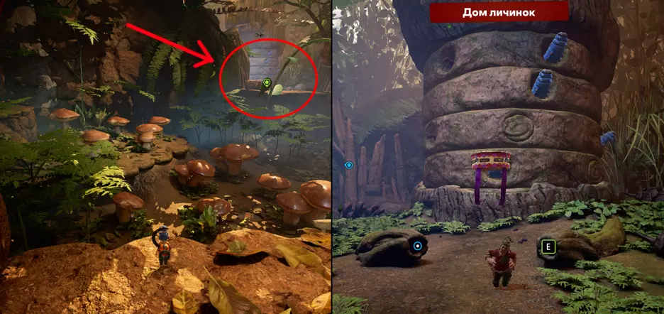 19. 幼虫之巢 在游戏过程中,你会遇到一条蘑菇小径。这条小径会向右通往章节的后续流程。但你需要向左走,穿过蕨类灌木丛,以找到迷你游戏。