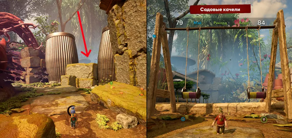 飞行正常! 在有垫子的传送点,我们还能遇到秋千。需要让科迪变成小不点,然后梅把他扔到对面,之后就能获得成就。这些秋千的样子如截图所示。