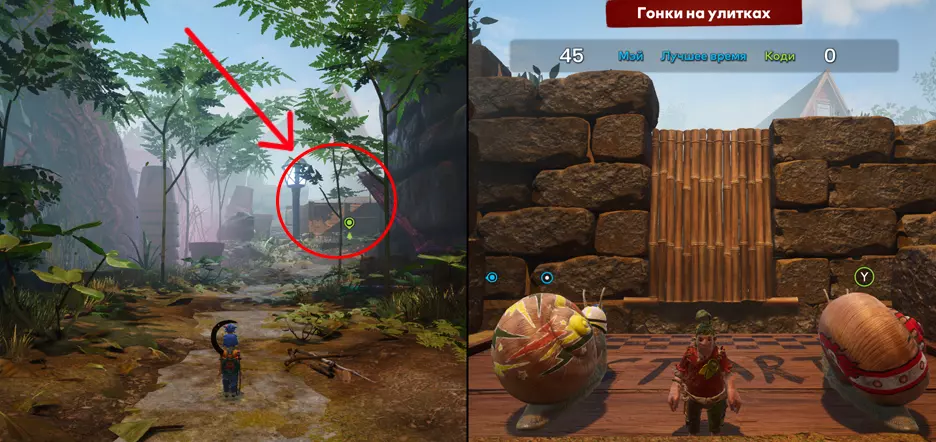 章节:青蛙池塘 20. 蜗牛赛跑 在你乘坐青蛙并激活喷泉后,会进入下一个区域。你面前会有一条小路,路的尽头有一盏小灯笼。就在这盏灯笼后面会有一个迷你游戏。