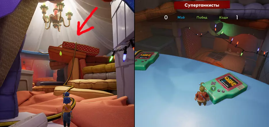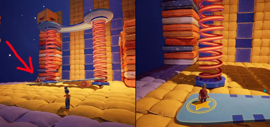 章节:枕头堡垒 5. 超级坦克手 当你进入这个区域后,需要沿着枕头爬到顶部。找到一对类似GAMEBOY的游戏机——这就是迷你游戏。