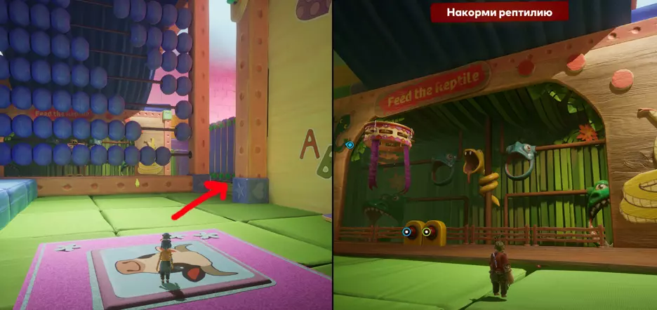 10. 喂养爬行动物 在带着方块在轨道上进行了有趣的滑行后,先别急着继续前进,往记分板墙后面看看,那里有一个迷你游戏。