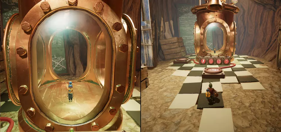 22. 国际象棋 当你获得舞台的立柱后,面前会再次出现地毯小径。沿着它直走,你会看到一个巨大的国际象棋棋盘——这就是迷你游戏。