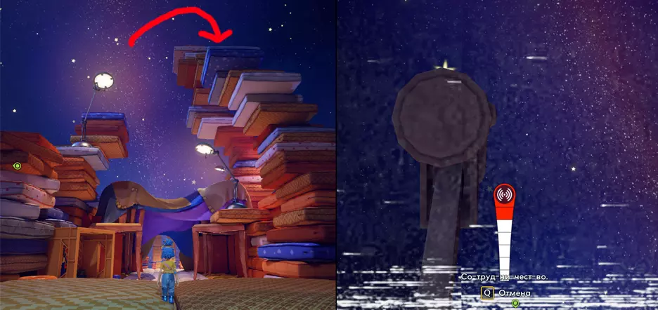 遥远频率 在游戏过程中,你需要找到一个装饰着枕头的传送门。进入传送门后,登上右侧的枕头塔。在那里你会找到一个用于寻找信息的小型卫星,坐在里面探索星空即可。你需要找到4条信息,并且必须听完它们才能获得成就。
