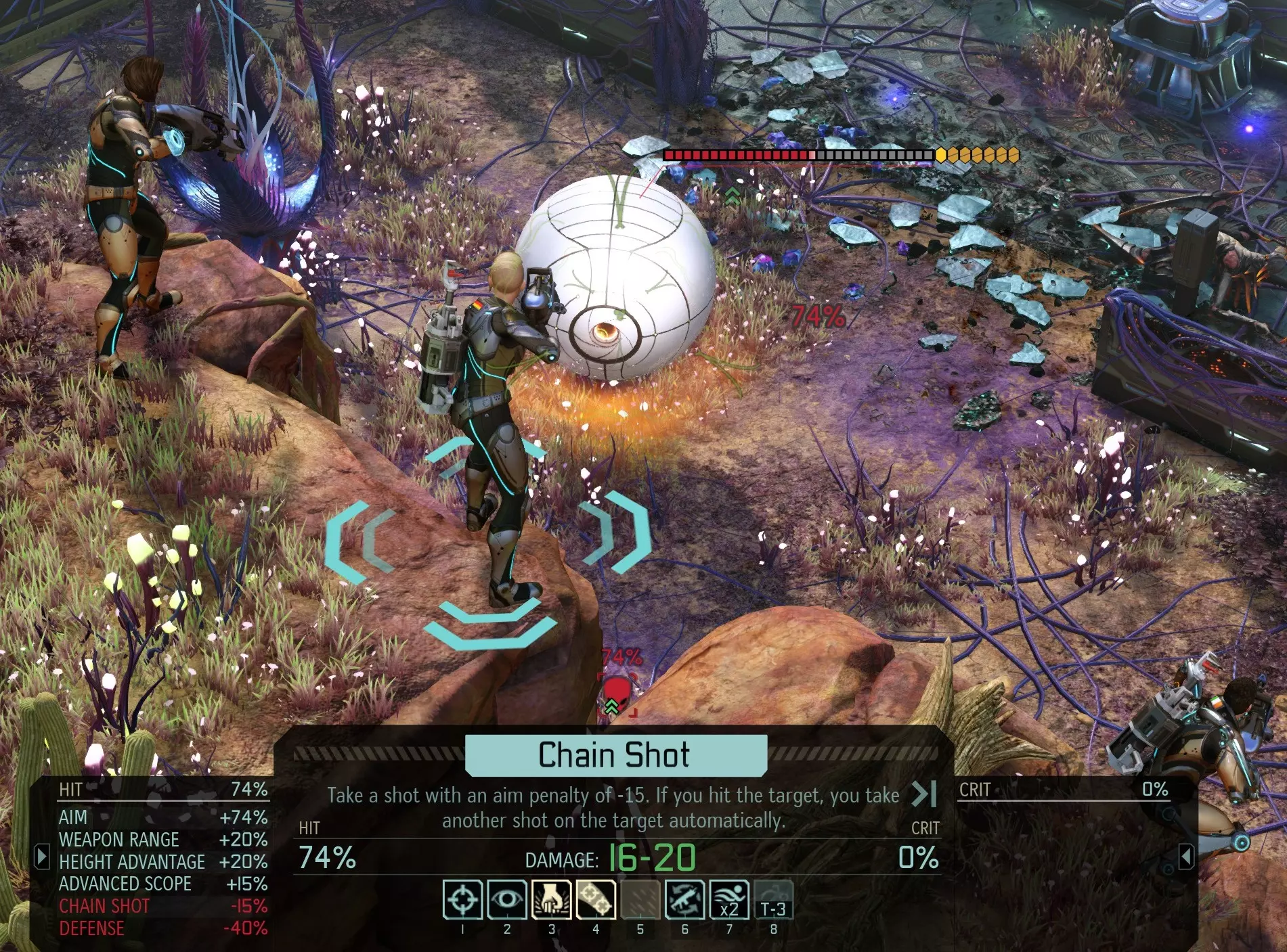 最后一名幸存者不会还击,而是会与另一个新的未被发现的舱体重新汇合。 注:这种偶然情况通常发生在 Advent 单位身上,但也会发生在诸如执政官和仙女座机甲等更高等级的敌人身上。 引诱敌人进入 拥有隐蔽侦察游侠的狙击手可以利用小队视野在远距离进行射击。