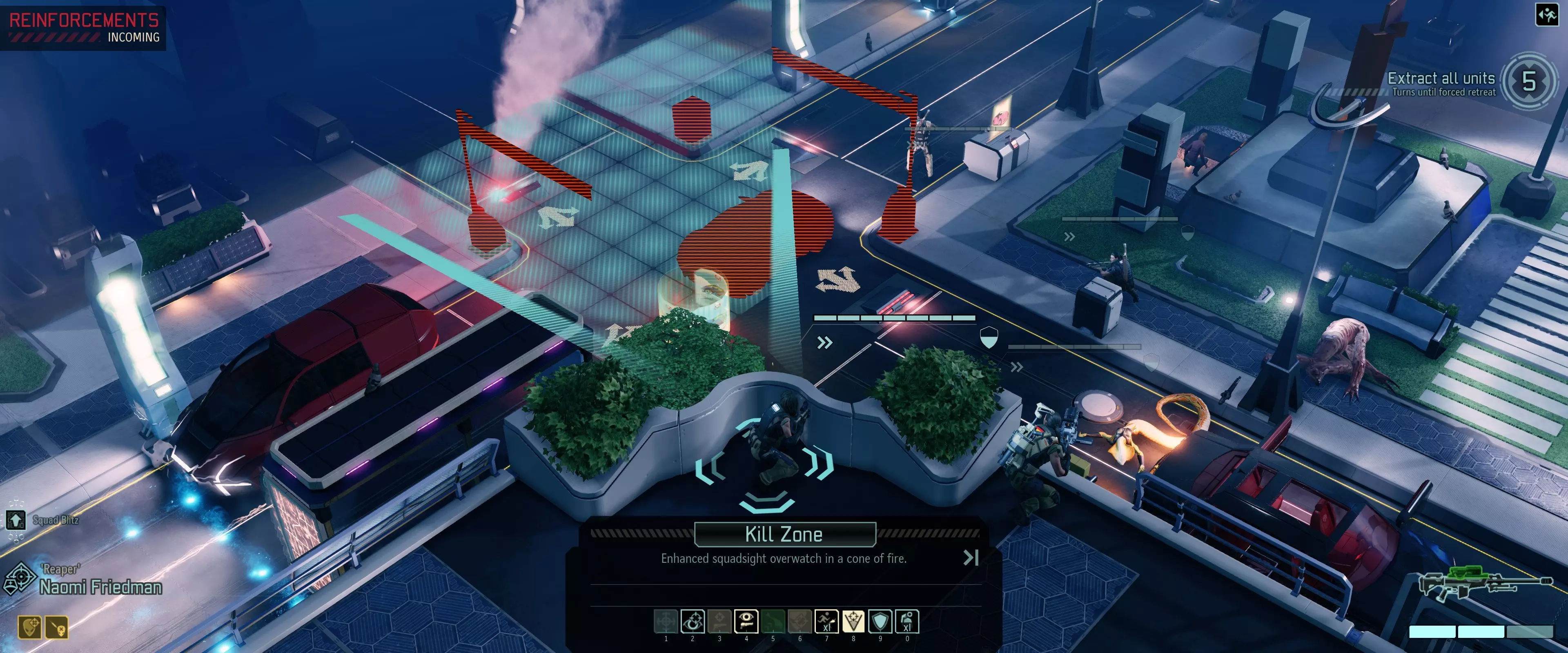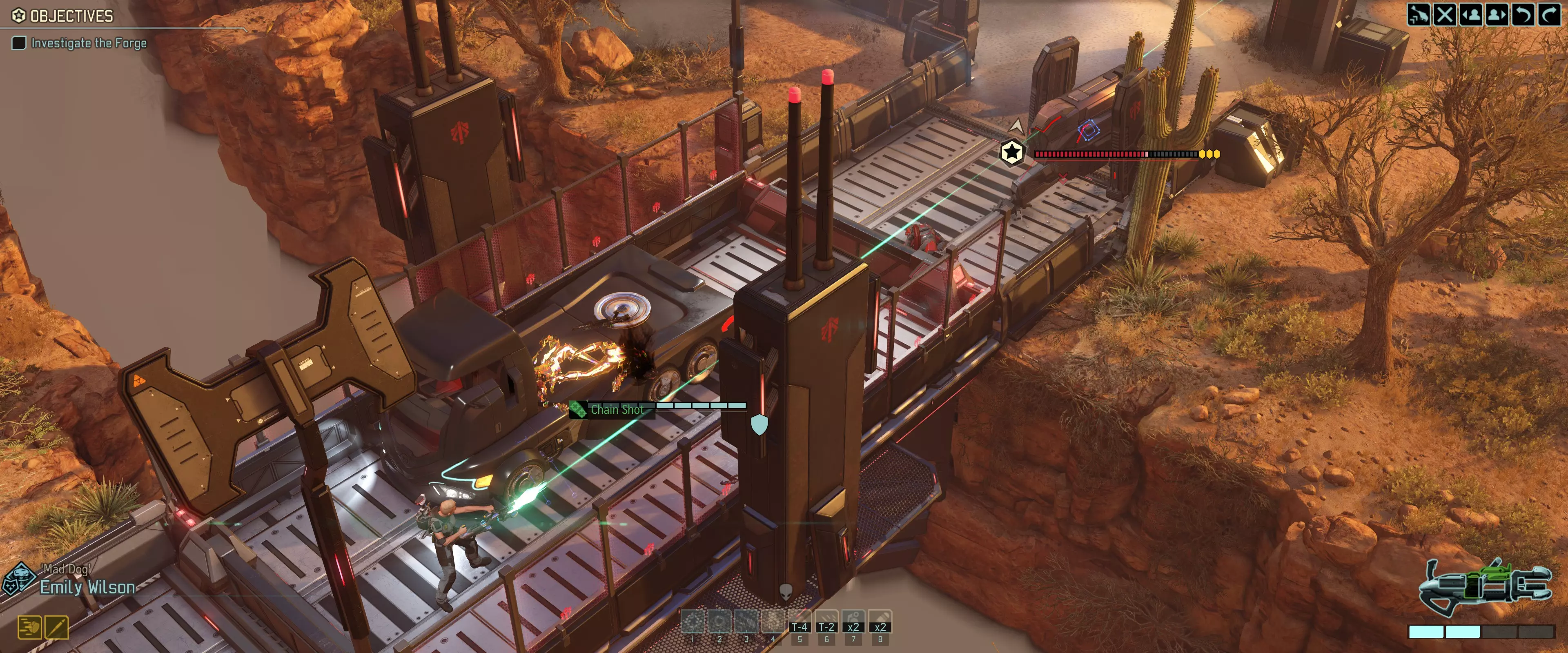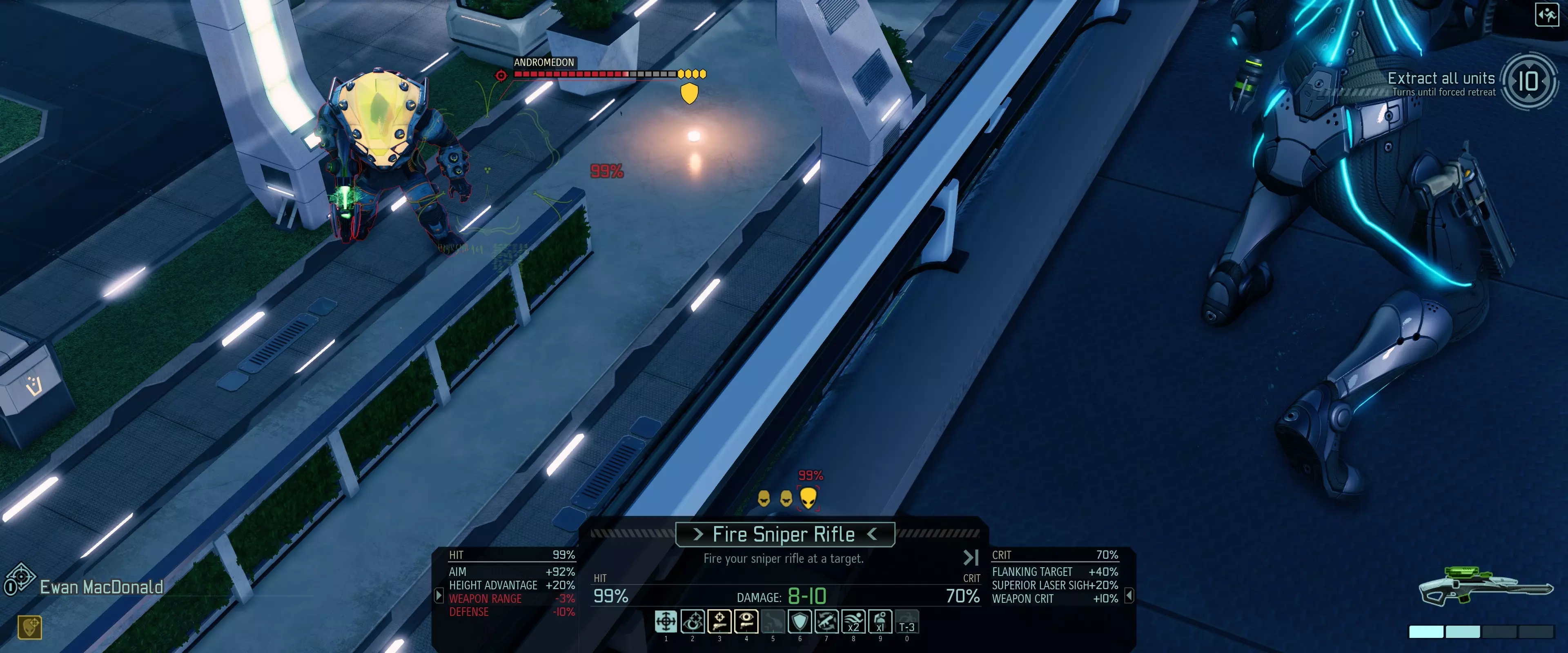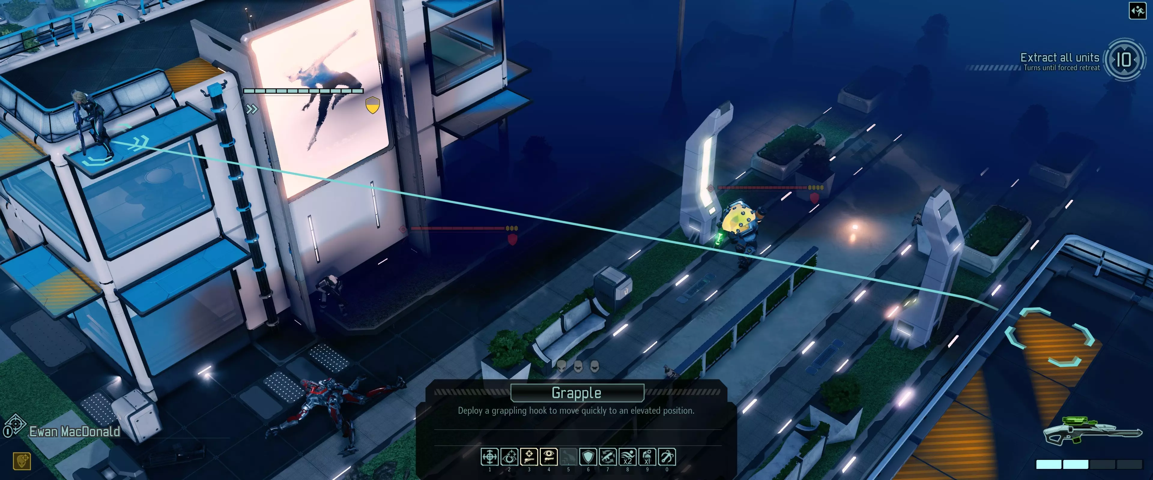 另一种选择是通过钩爪脱离危险区域,或者寄希望于它的攻击落空。 Sectopod 最棘手的机械单位,需要在一回合内将其消灭。