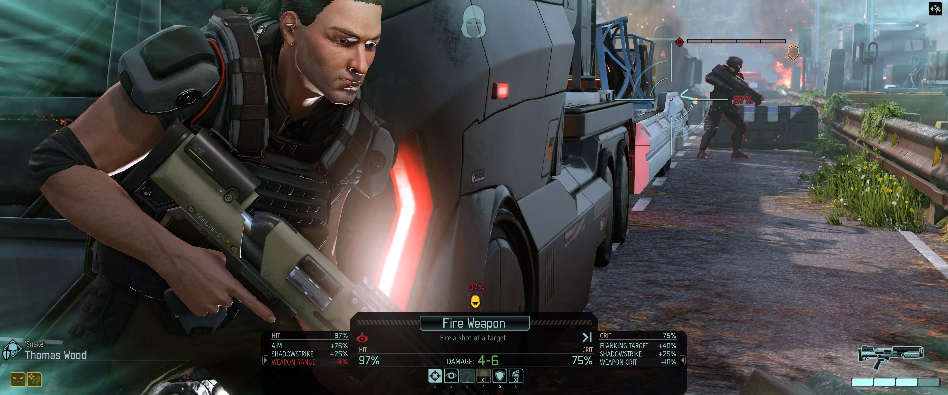 首次攻击必须是致命一击,且目标必须是视野中唯一可见的敌人,其余敌人需处于隐藏状态。 注:游侠能够进行此攻击是因为处于隐蔽状态。 非触发式瞬杀狙击 狙击手在不惊动其他敌人的情况下消灭单个敌人的概率最高。
