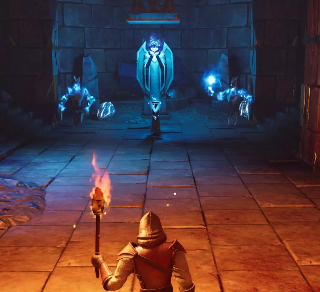 哨兵守卫着一扇被封锁的门,门后是一个有一些黏土节点的房间。隔壁房间里,2个绿巨人与1个哨兵守卫着一个宝库核心。该房间内还包含一个宝箱和两个符文精华节点。