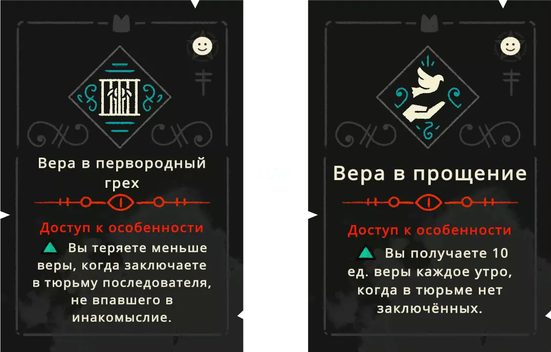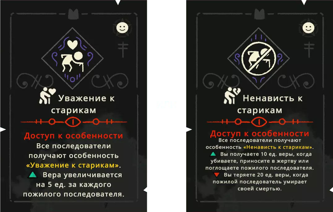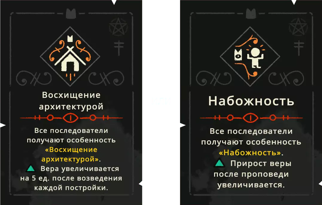 信徒特质 信徒从一开始最多可以拥有3个特质。随着新教义的解锁,你可以为他们添加新的特质,这些特质是他们加入教派时获得的。 正面特质在各方面都很有用,但【自然顺从】除外——它在紧急情况下有用,但在其他方面与长期侍奉无关。
