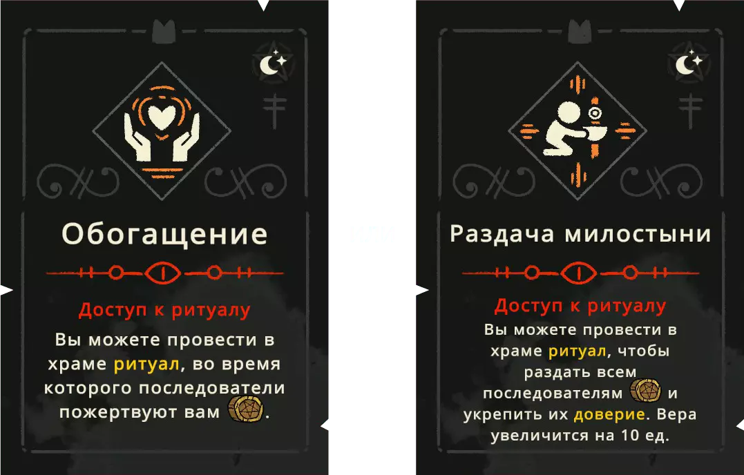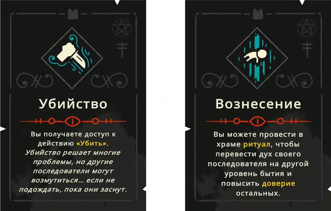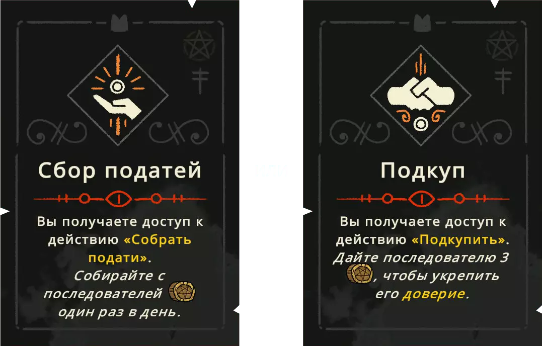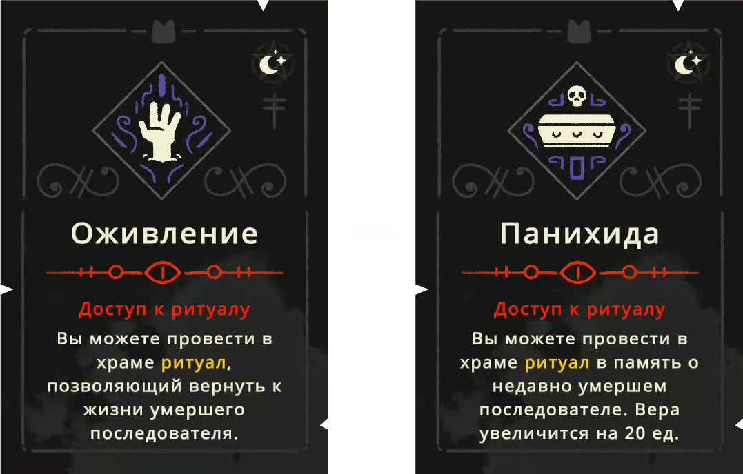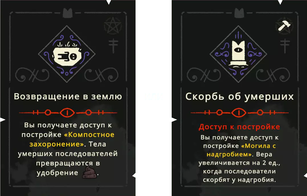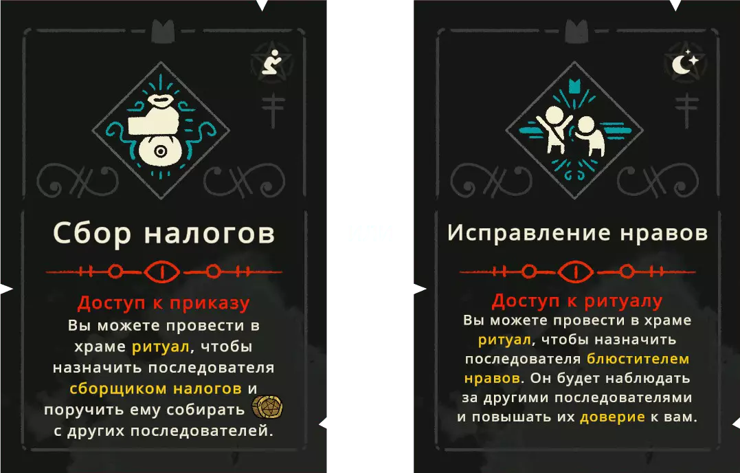 【符石】可以通过探索世界获得,也能通过提升追随者的忠诚度来获取。 戒律分为五个独立的组别,每个组别又分为四个等级。提升等级时,会为你提供两个戒律供选择,但每次只能选择其中一个。选择后,你才能解锁下一级别的更高阶戒律。 《冥府生活》