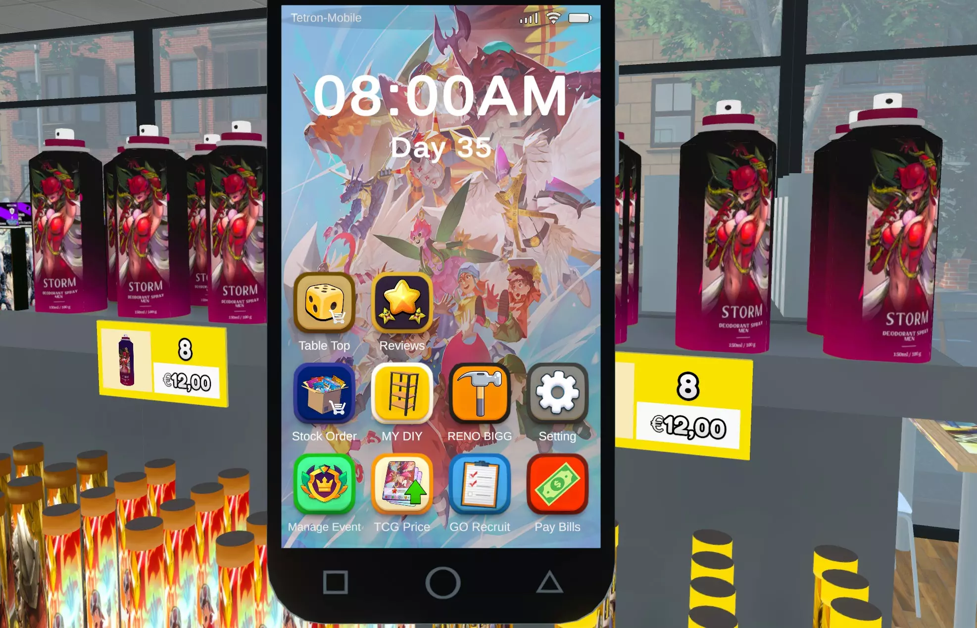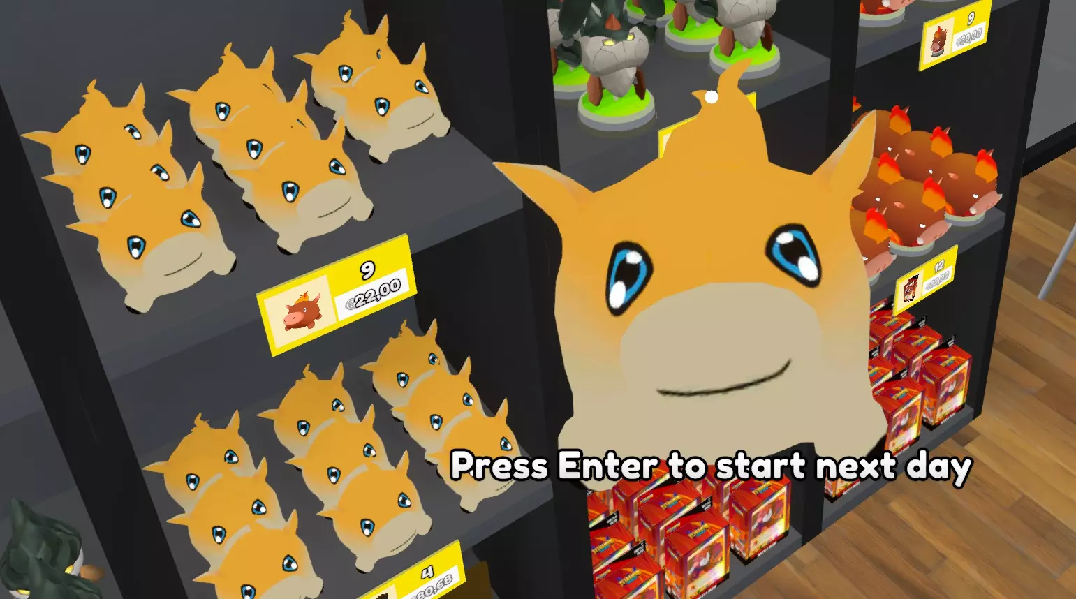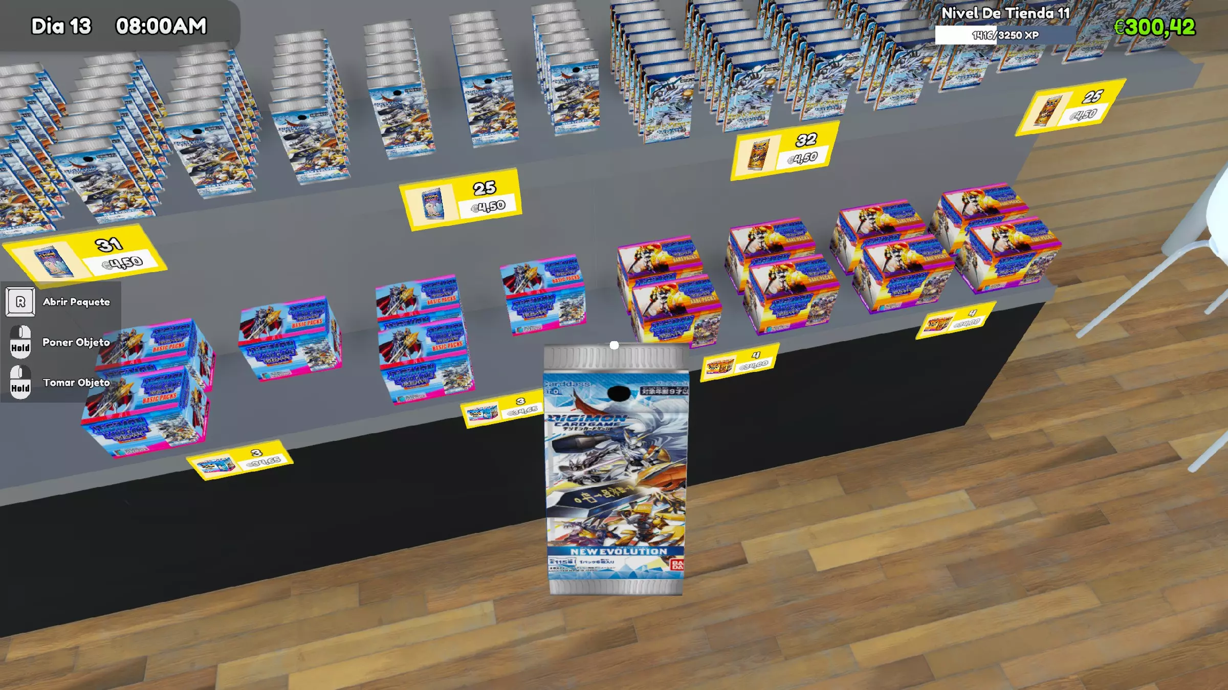 Patch notes v0.36.0 Some cards updated. v0.36.1 Most of the cards and some miscellanea updated. v0.37.0 Updated to work with the new update (v0.37 version). All cards updated. Some misc updated (title, backcards, boxes ...) v0.37.1 Recropped several cards. Added a secret pikachu. v0.37.2 Now the store's players are playing Digimon TCG Resize of several cards. v0.37.3 Added some logos. Changed road signal for Agumon. v0.38.0 Updated to work with the new update (version 0.38). Added card sleeves. Added Playmate icons. Added orange color to the rare pack to avoid confusion. Added one Deck Box (Gallantmon Crimson Mode) Several icons updated. Several images updated/recropped. v0.38.1 Updated images for the Legendary Dragons (Ancient Digimons) Added images to "Ghost" level cards (I forgot these ones on the first version of the mod). Several cards recropped. v0.39.0 Updated to work with the new update (version 0.39). Updated pack icons to match with the 3D-models. Repainted some packs to make them match with their colour. v0.39.1 Added digimon's names to the cards. Tried to make a Patamon plush (I'm not very good with textures, so it looks a little lame, sorry). v0.40.0 Updated to work with the new update (version 0.40). Fixed an issue that avoided the game to load further than 19% (sorry for that). Patamon plush icon ftw v0.40.1 Updated Collection Box Textures Updated Playmats Textures. T-shirts: Now some customers and employees will wear digimon themed tshirts v0.40.2 Updated some missing names. I tried to make a gabumon plush too. Fixed an "error" that gave to almost everyone a angewomon tshirt. (It didn't seem like an error to me). v0.40.3 Added a starmon plush. Updated some pack's icons. Added playmats for the store's tables. v0.40.4 Updated all the pack's icons. Added a new Deck (Megagargomon) Updated Billboard image. v0.41.0 Updated to work with the new update (version 0.41). Updated the tabletop games to be Digimon TGC's Cardbox v0.43.0 Updated to work with the new update (version 0.43). v0.44.0 Updated to work with the new update (version 0.44). v0.44.1 New Deck Boxes New Starter Deck Minor fixes on images. v0.44.1b New Deck Box. Some icons updated. Replaced Falcomon evolution line with Sistermon. v0.45.0 Updated to work with the new update (version 0.45). New Starter Deck Some images and icons updated. v0.45.0b New decks, new cursed plushies and new stuff to sell. v0.45.0c All the decks updated, a new cursed plushie and new games to sell. Corrected the name of several items. v0.46.0 Updated to work with the new update (version 0.46). A new plushie, several cardframes and Ogremon have been added. Some minor fixes on names. v0.46.0b New images for the store's signs, phone wallpaper, Storm Spray, collection book's pages, bulk boxes, ... Digimon's shirts are back!! v0.47.3 New plushie, added some mangas, some minor fixes, added ads. v0.47.3b Some name's errors. All Manga books updated. v0.48.0 Added all the mangas. New card added (Ghost Beelstarmon) All names updated. New playmats added. v0.49.0 Updated to work with the new update (version 0.49). v0.49.2 Updated to work with the new update (version 0.49.2). Added the credit card again (idk when it dissapeared). Added the Stats Icons to the cards. v0.50.1 Updated to work with the new update (version 0.50.1). New cards added. v0.50.2 Updated to work with the new update (version 0.50.2). There are a lot of changes on the texture's size and location, so the new version of the mod is much heavier than expected. v0.50.4 Updated to work with the new update (version 0.50.4). Sorry, I've been really busy these days and was impossible for me to check the status of the game. Merry christmas everyone! v0.51.0 Updated to work with the new update (version 0.51). v0.52.0 Updated with TextureReplacer, this way should work on 0.52 and next versions. Legacy Versions In case you need it, you can access to the old versions of the mod here: https://drive.google.com/drive/folders/1P2nTRy28y7CtARlGrT84OqIfbaVYWAat