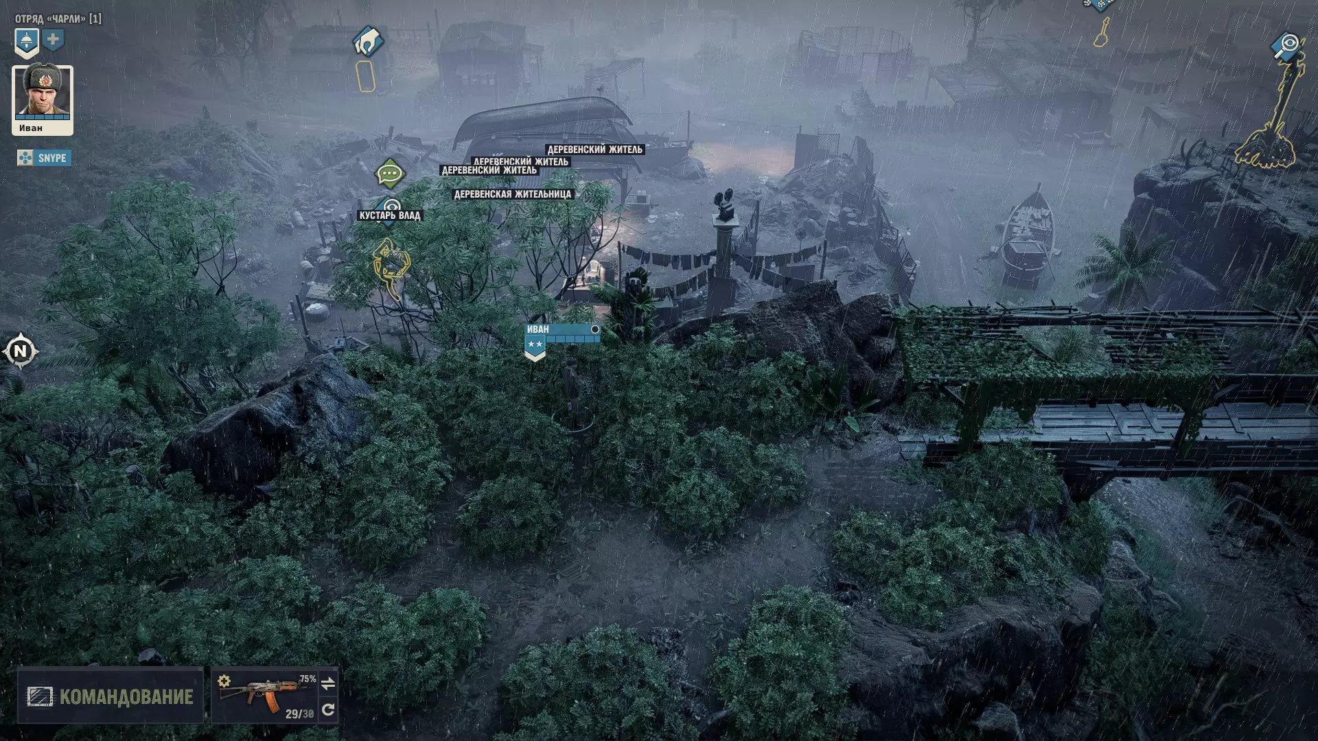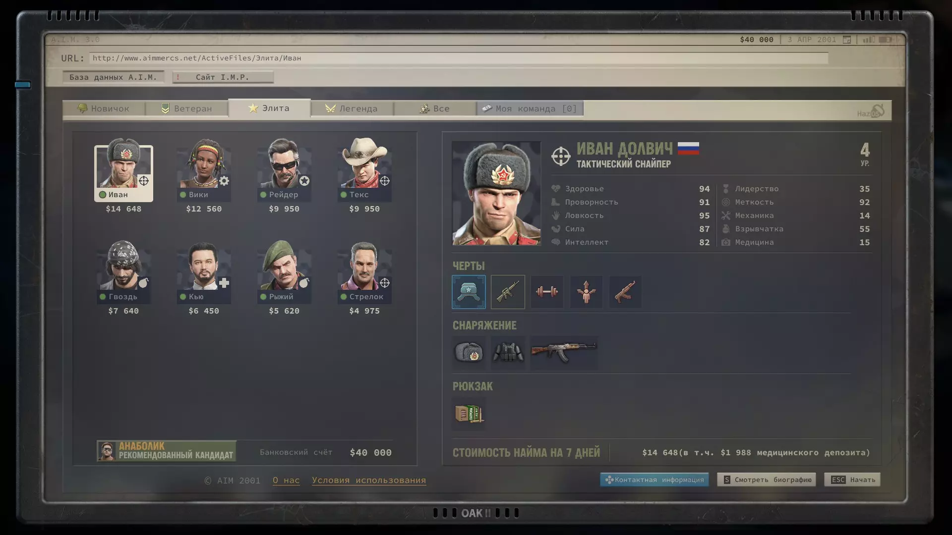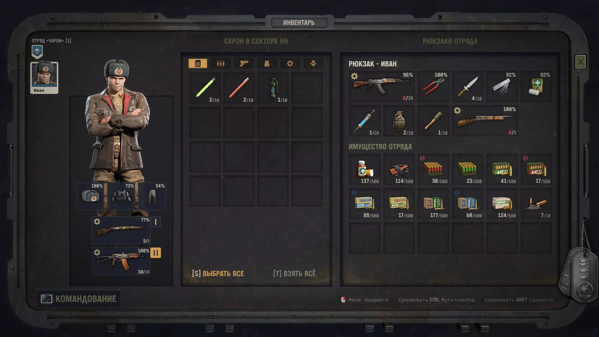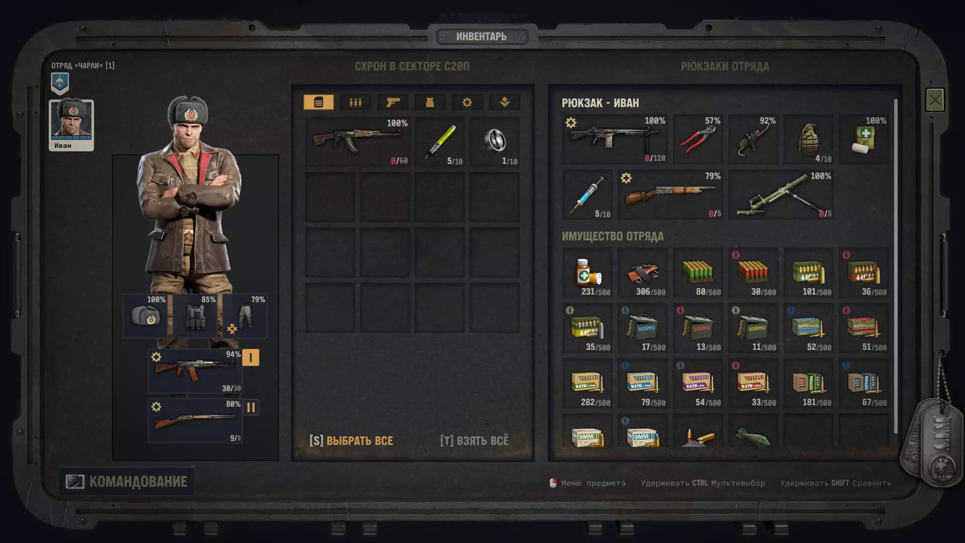 Теперь подробнее, почему именно он, его плюсы и минусы. Плюсы: 1) Главный его плюс, это его уникальная абилка. За каждый килл, он получает 3 ОД. Хмммм, ну 3 ОД и 3 ОД, что же в ней такого имбового. А я вам отвечу: допустим есть такой модифицированный дробовик Auto-5, выстрел из которого стоит 3 ОД, а еще дробовики хорошо любят критовать. Смекаете да, выстрел 3 ОД, за убийство Иван получает обратно 3 ОД и так можно косить просто толпы народу, за 0 ОД. 2) Вторая его абилка, уже не так имбует, но также хороша. Она снижает штраф к точности, при стрельбе очередями. 3) Все его боевые статы уже прокачены. Вам не нужно заморачиваться с прокачкой, с самого старта игры, он уже готовая машина для аннигиляции врагов в промышленных масштабах. Минусы: Главный и основной его минус, это слабые показатели медицины и механики. Иван не сможет лечить свои раны (но это нам будет даже на руку) и не сможет ремонтировать снаряжение. Вообще... НИКАК! Любое оружие имея ниже 70% прочности имеет шанс клина при выстреле и это выглядит серьезной проблемой. Но, и это решаемо. И да, забегая вперед, иногда(крайне редко) придется сейвскамить после клина. Тут уж никуда не деться. Прокачка Ивана Иван стартует на 4 уровне и 3 абилки уже взяты, 2 из них пригодятся, а вот Атака во фланг, увы - бесполезна. Ведь вы играете в одиночку, а значит ситуаций когда эта абилка будет работать, просто не будет. Ну это вообще не критично. Не обязательно брать абилки именно в таком порядке, вы можете вообще качаться по другому, но я выбирал так: Разгон с толчком (свободное перемещение работает на большее расстояние, если вы начинаете свой ход в укрытии). Каждый ход нужно заканчивать в укрытии, это аксиома. Эта абилка даст вам больше маневренности. Зачистка местности (бросок гранаты или выстрел дробовика дает свободное перемещение). Перед боем с Майором, нужно взять или эту абилку, или Штурм, я выбрал эту. Штурм (30% шанс на доп. крит, если вы находитесь в режиме стрельбы в упор). Эту абилку взял уже после Майора, но дробовик нам понадобится еще не раз. Ярость (10% урона за каждое ранение). До Майора эту абилку точно брать не стоит, ибо серьезных боев до него, просто не будет. Там негде будет получать ранения, да и без надобности, ибо все будет вычищаться без напряга. Снайпер (5% крита за каждое прицеливание). Можно брать и раньше, но я выбрал маневренность. Урона Ивану и так хватает. Киллер Получил уже в самом конце почти под финальные титры, когда было уже все равно. Берите, что хотите. Алгоритм боя с такой прокачкой примерно такой: чистите максимум кого можете по стелсу, далее агрите оставшиеся народ. На вас выбегает несколько противников, вы убиваете парочку, а от остальных, на свободном перемещении, просто убегаете. В итоге противник пытается до вас добежать, тратя все ОД и не стреляет. Либо он делает неск.шагов и все-таки решает выстрелить с черти какого расстояния и конечно же мажет. Получается, такой Иван хрен попадешь! В самых сложных боях (обычно с обильным применением дробовика), тактика меняется, но уже более подробно, я буду расписывать в прохождении. Прохождение Версия игры, на которой было прохождение 1.5.1. Ставим легкую сложность (на самом деле, можно любую. Я проходил и на максималке, и на легкой, и не сказать, чтобы особо заметил разницу. Но лучше, ничего себе не усложнять). Из дополнительных модификаторов, я ставил только "A.I.M все