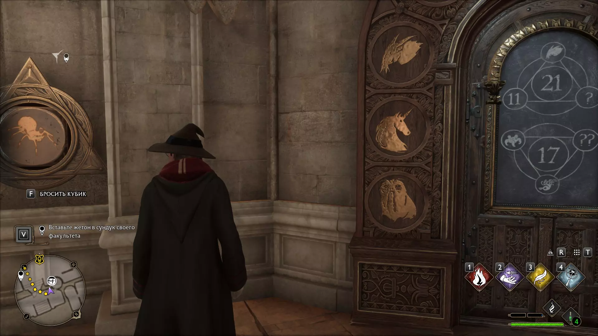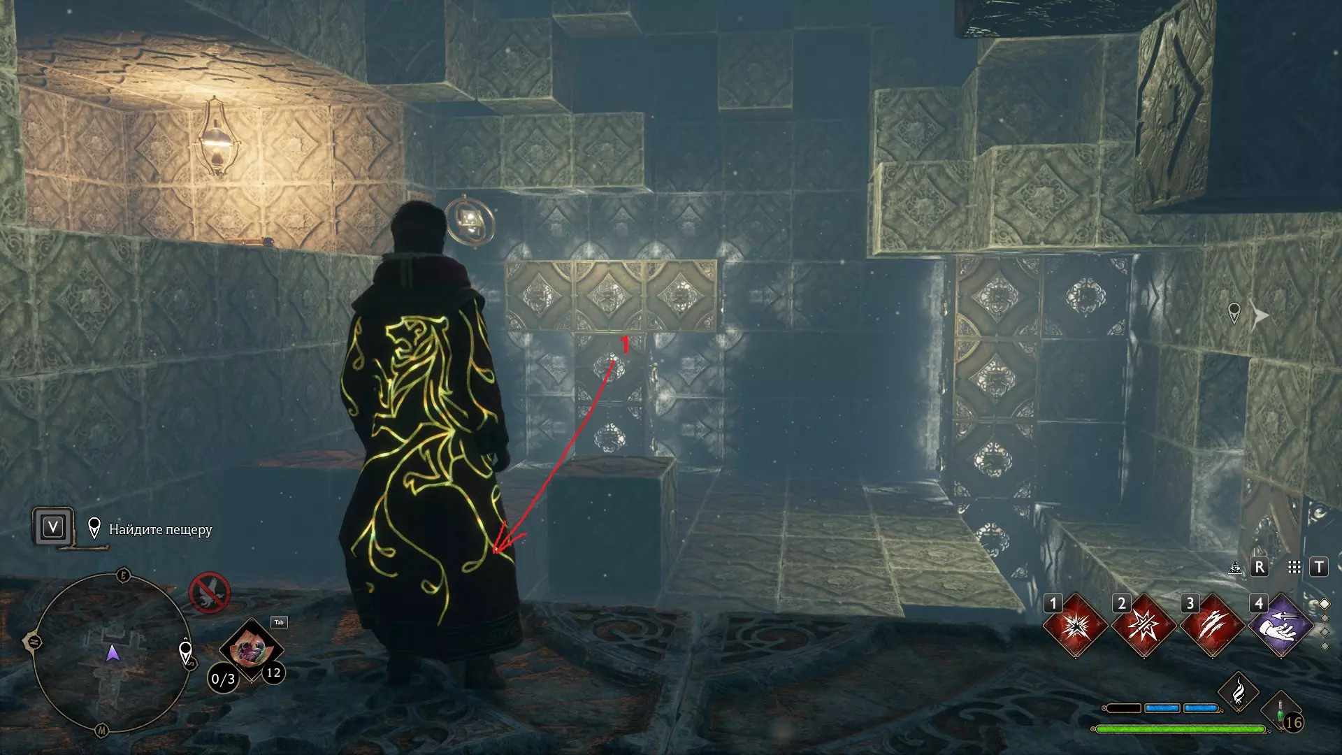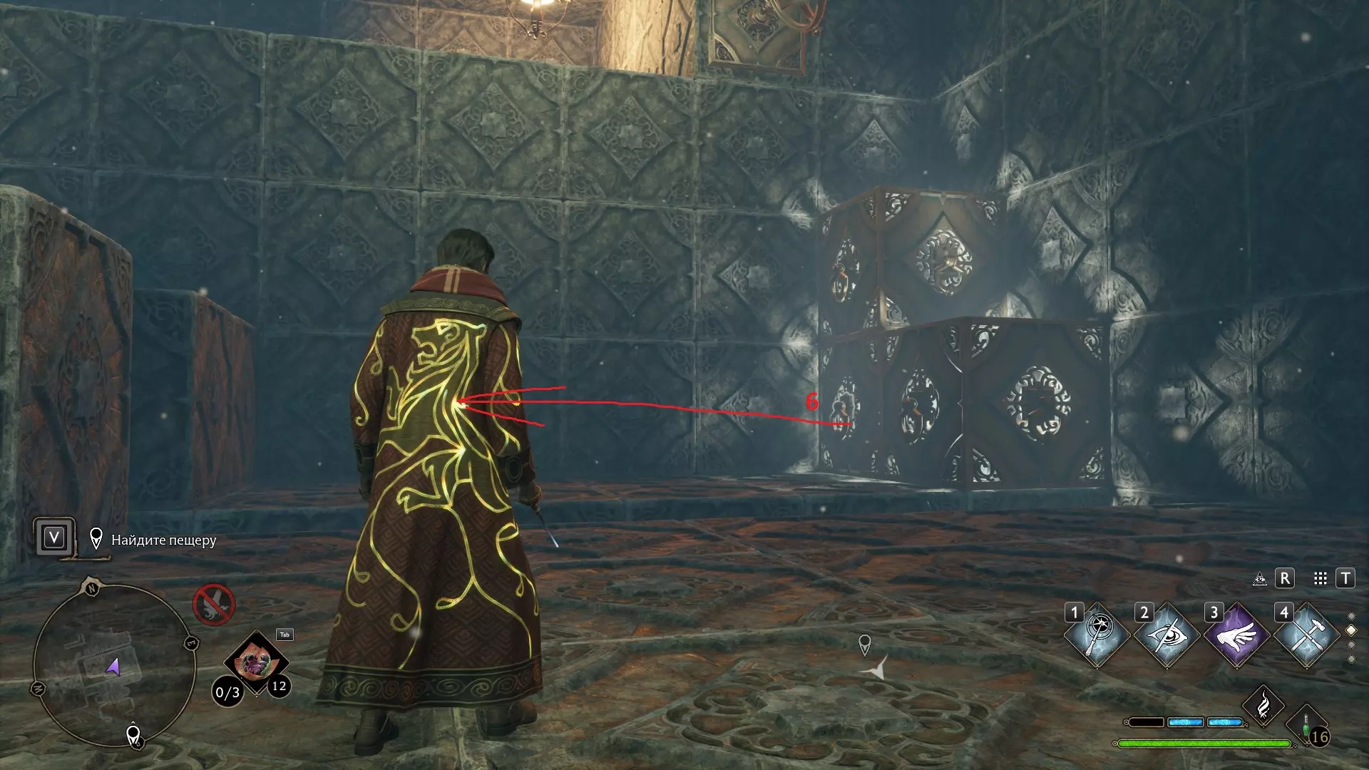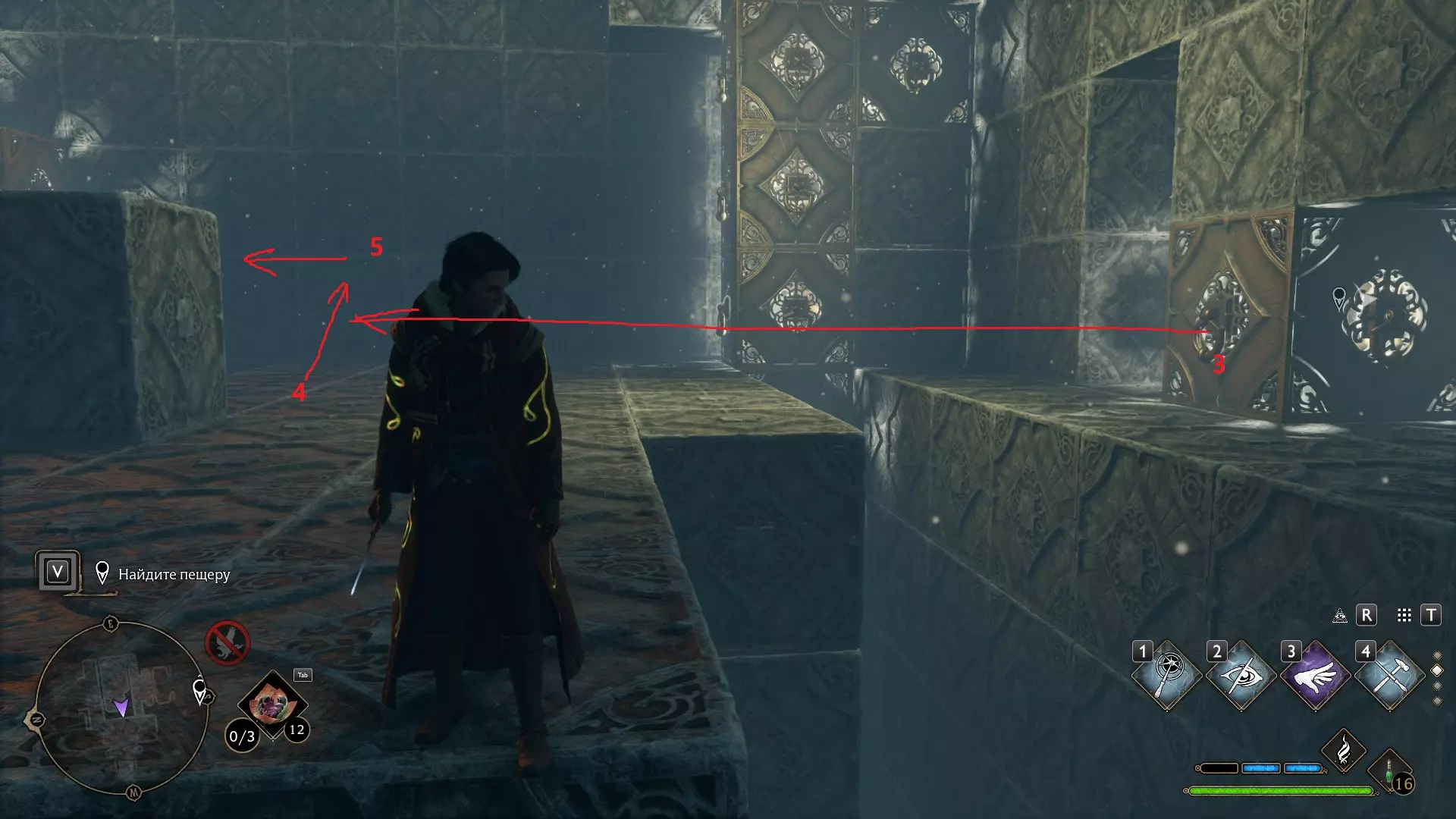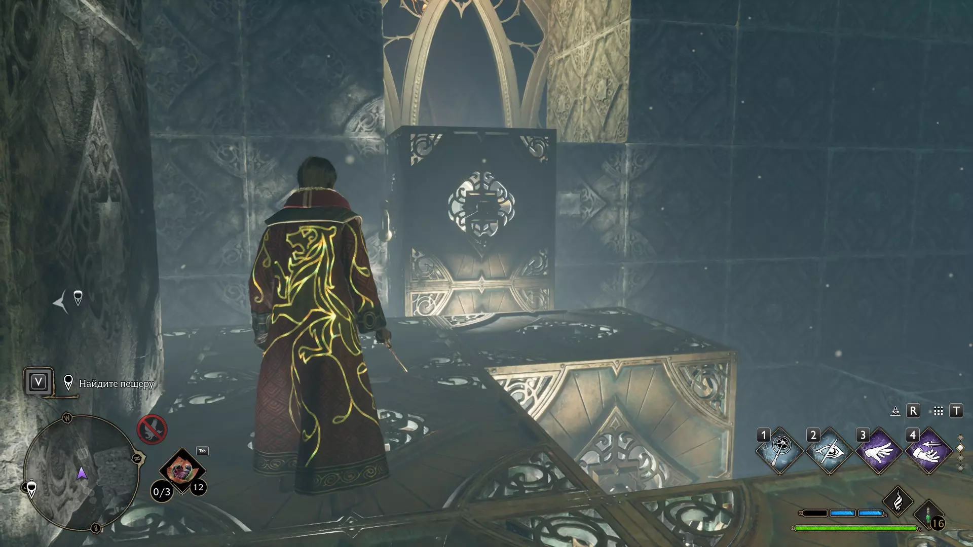 只有在游戏接近中期,当你学会【冰刺术】(Глациус)或【时间停止】(Арресто моментум)这两个咒语后,才能进入这扇门。我们会看到头顶上有一个巨大的钟摆,需要在它开始从右向左摆动之前,将其停在最终位置。