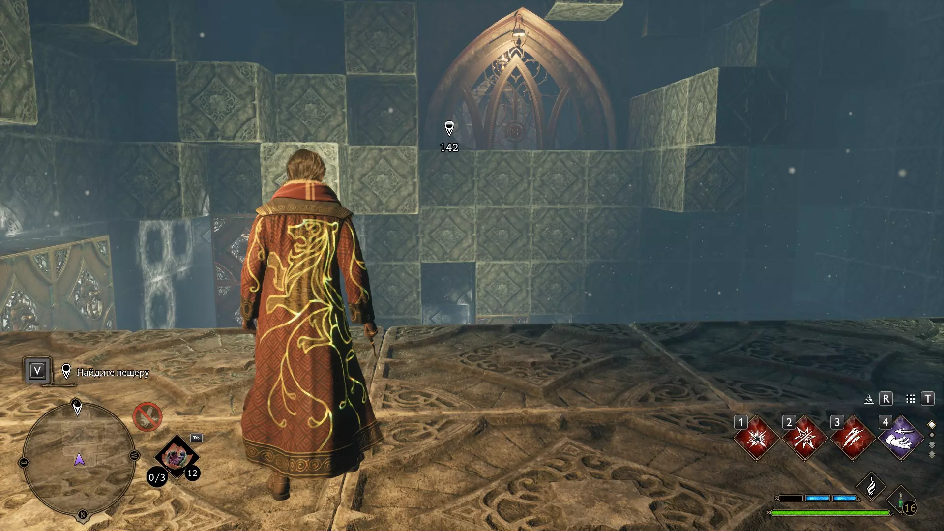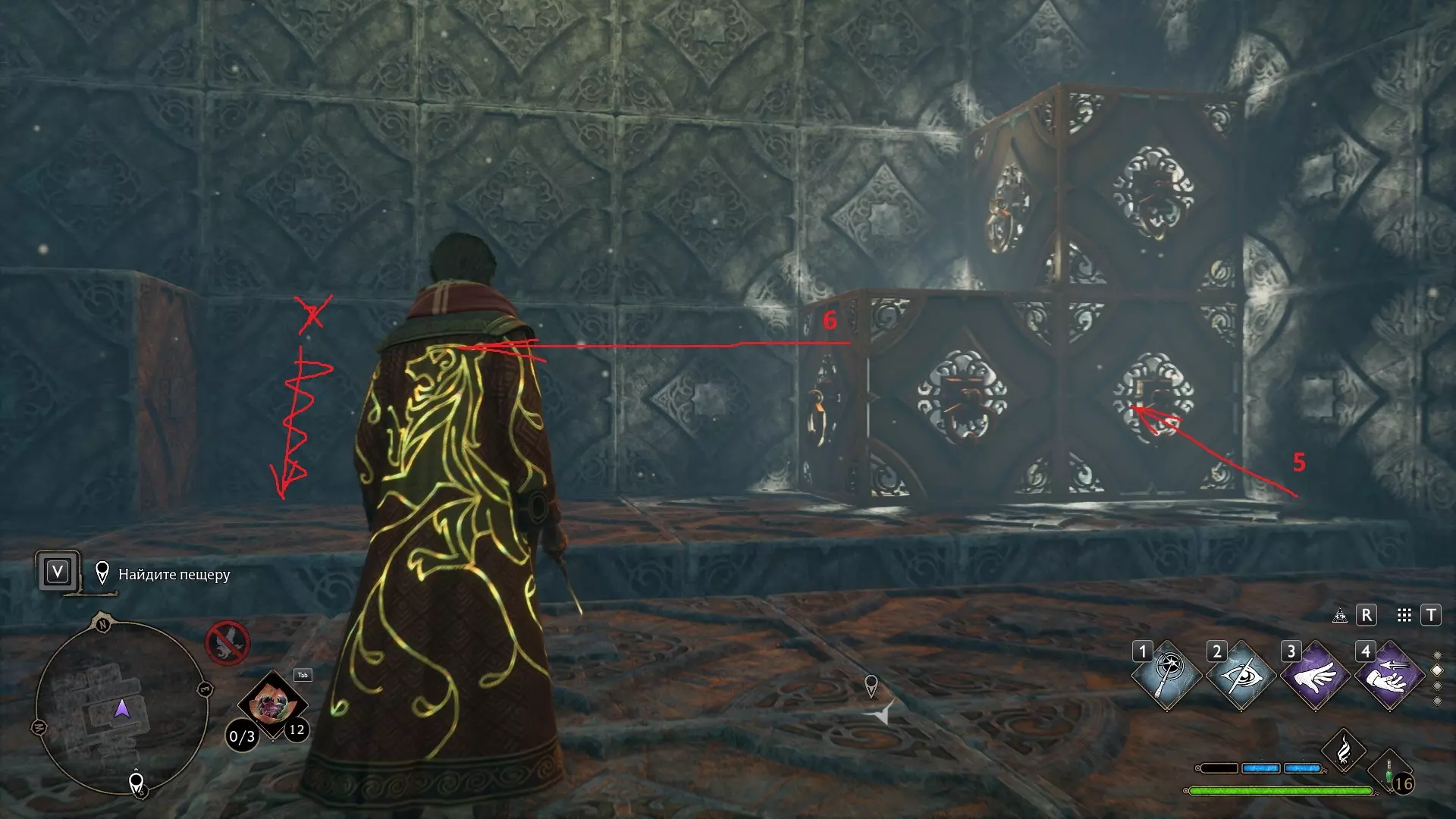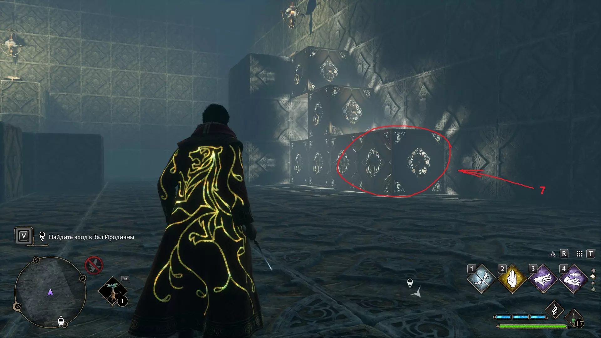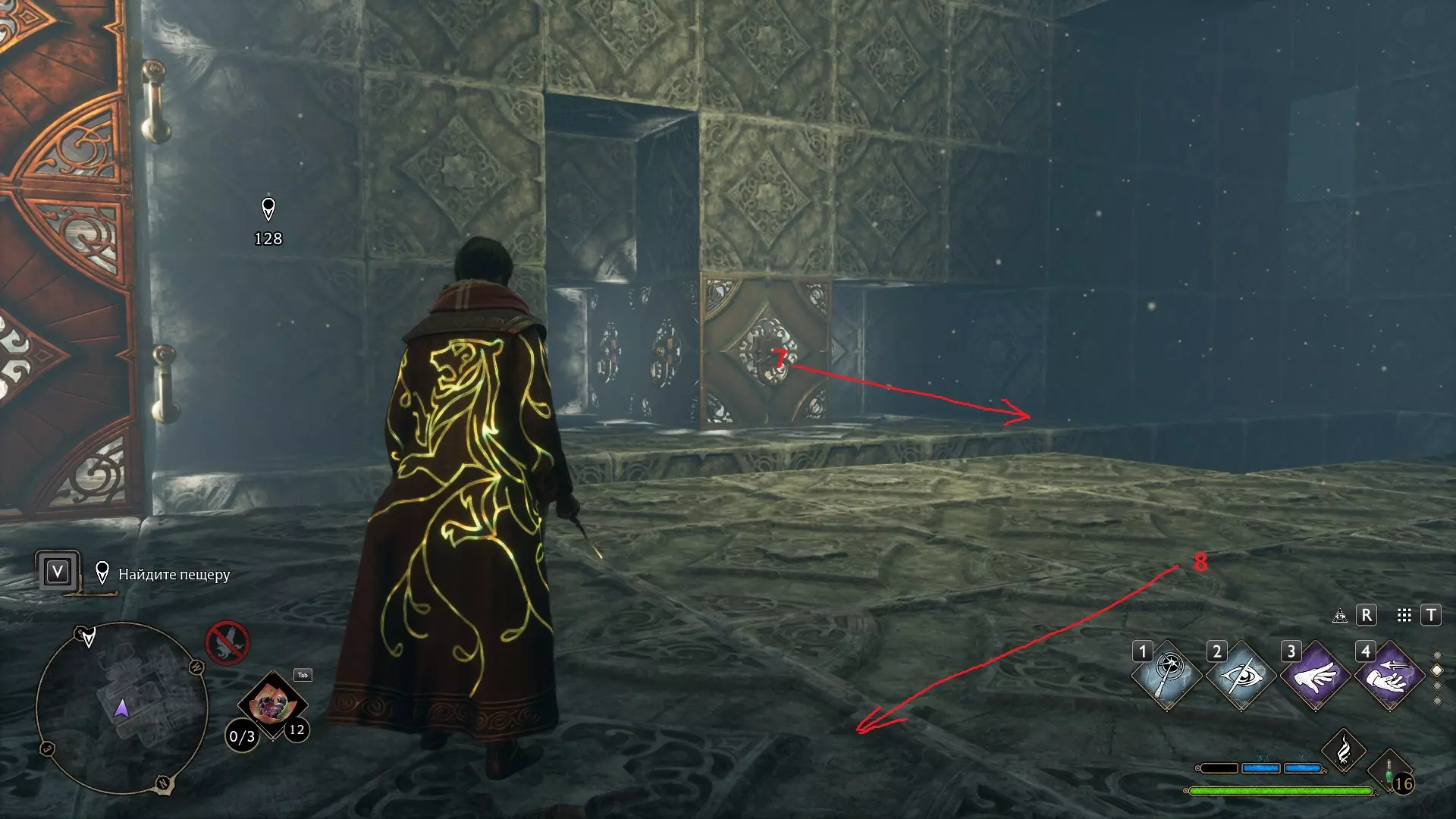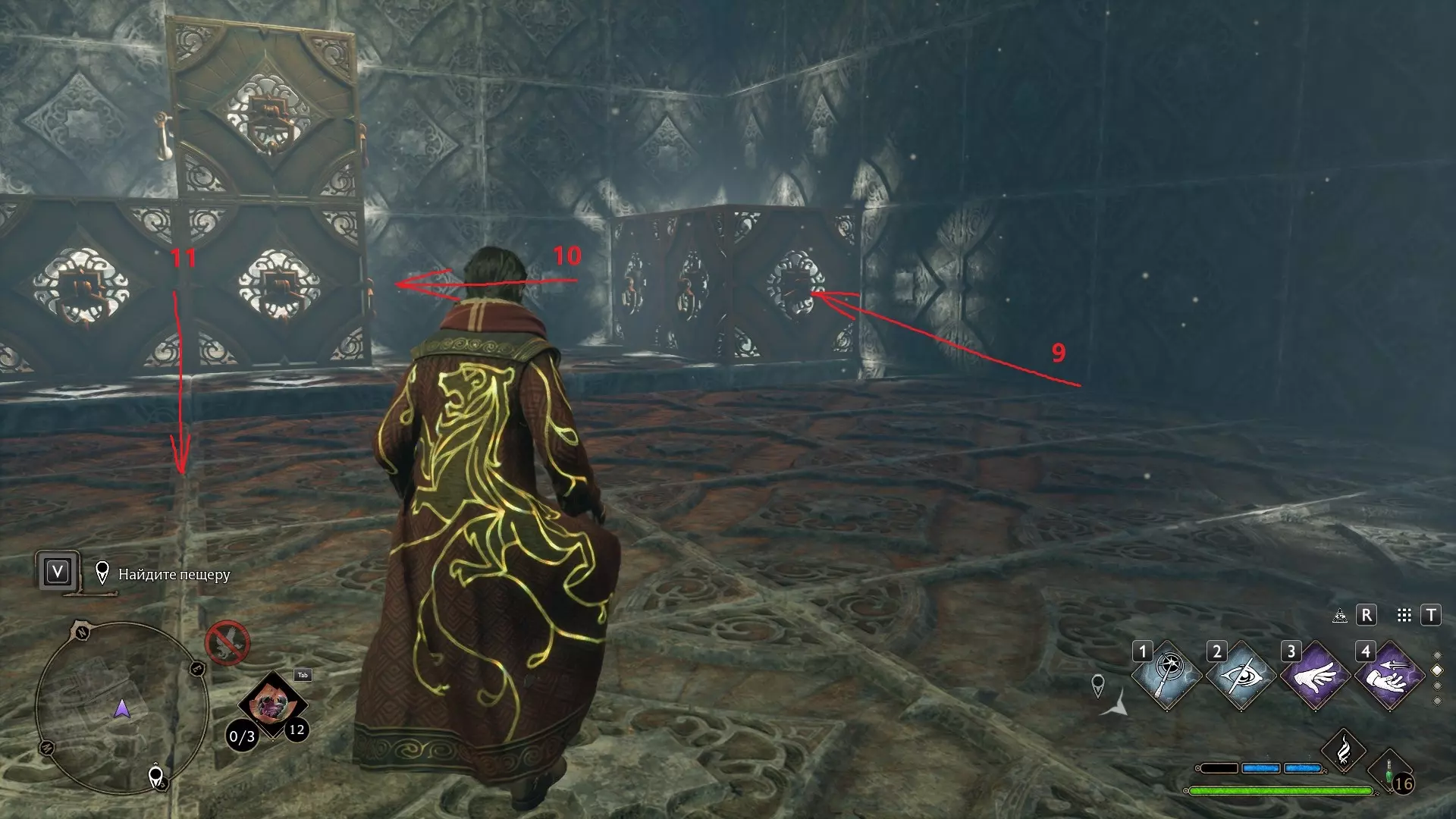 只有在游戏接近中期,当你学会【冰刺术】(Глациус)或【时间停止】(Арресто моментум)这两个咒语后,才能进入这扇门。我们会看到头顶上有一个巨大的钟摆,需要在它开始从右向左摆动之前,将其停在最终位置。