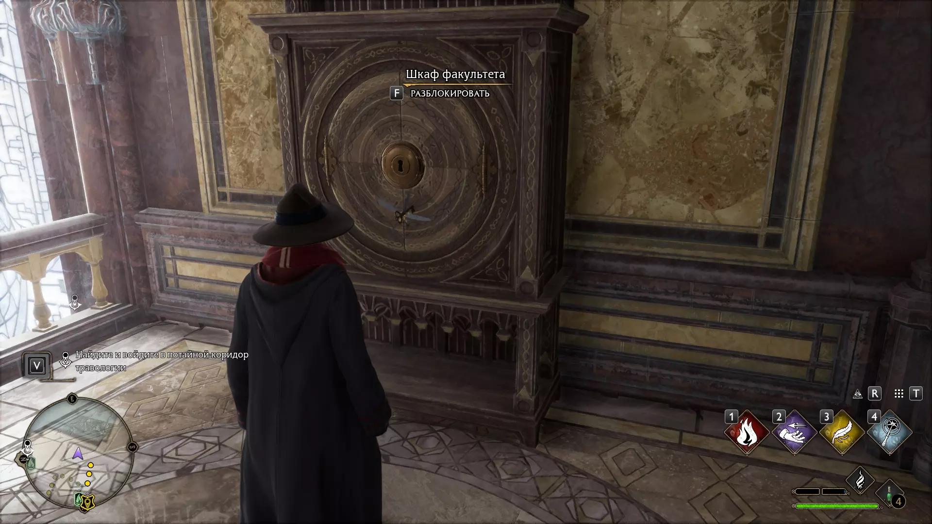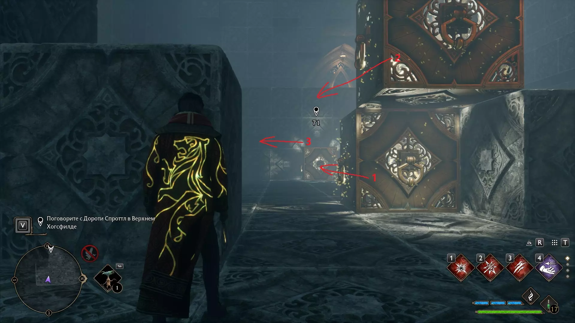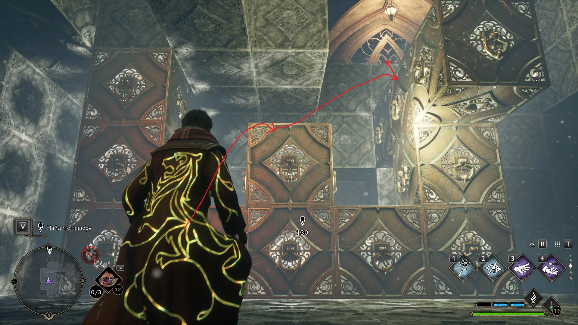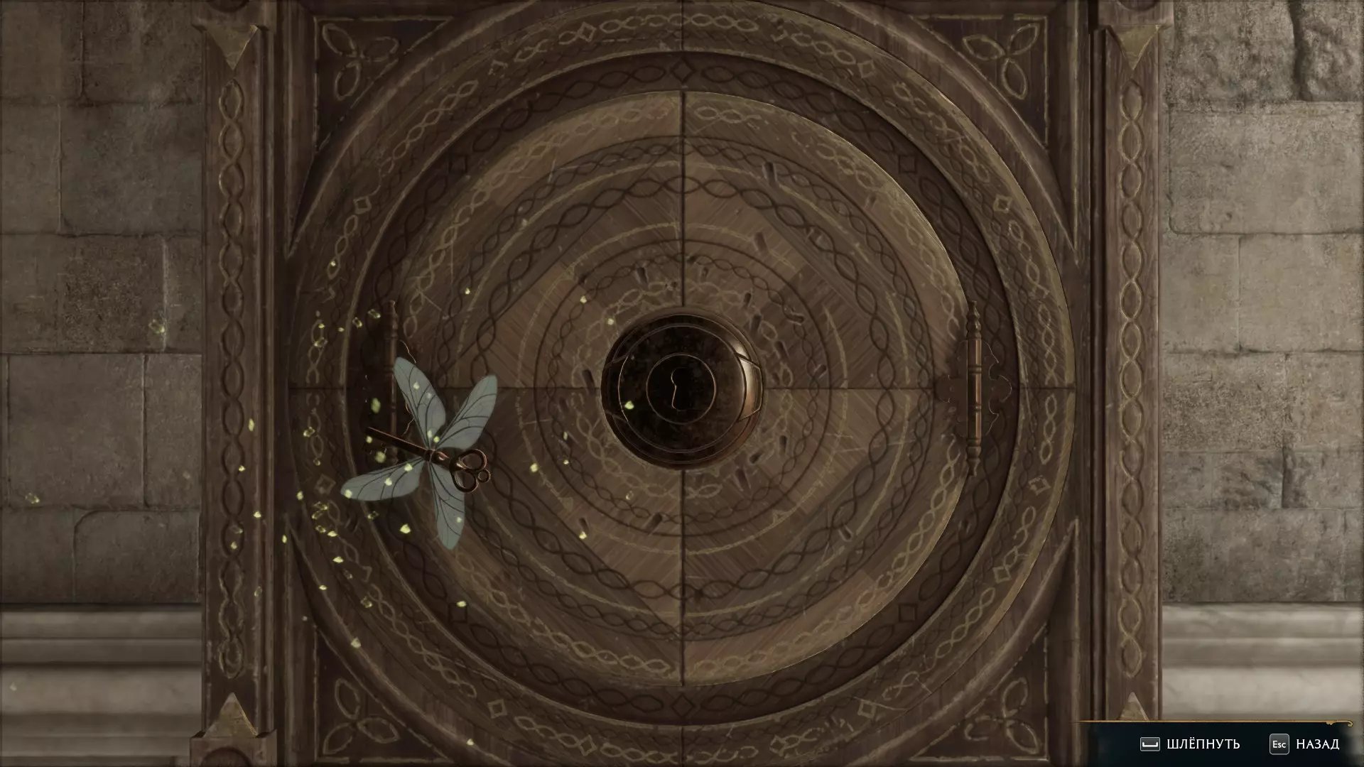 只有在游戏接近中期,当你学会【冰刺术】(Глациус)或【时间停止】(Арресто моментум)这两个咒语后,才能进入这扇门。我们会看到头顶上有一个巨大的钟摆,需要在它开始从右向左摆动之前,将其停在最终位置。
