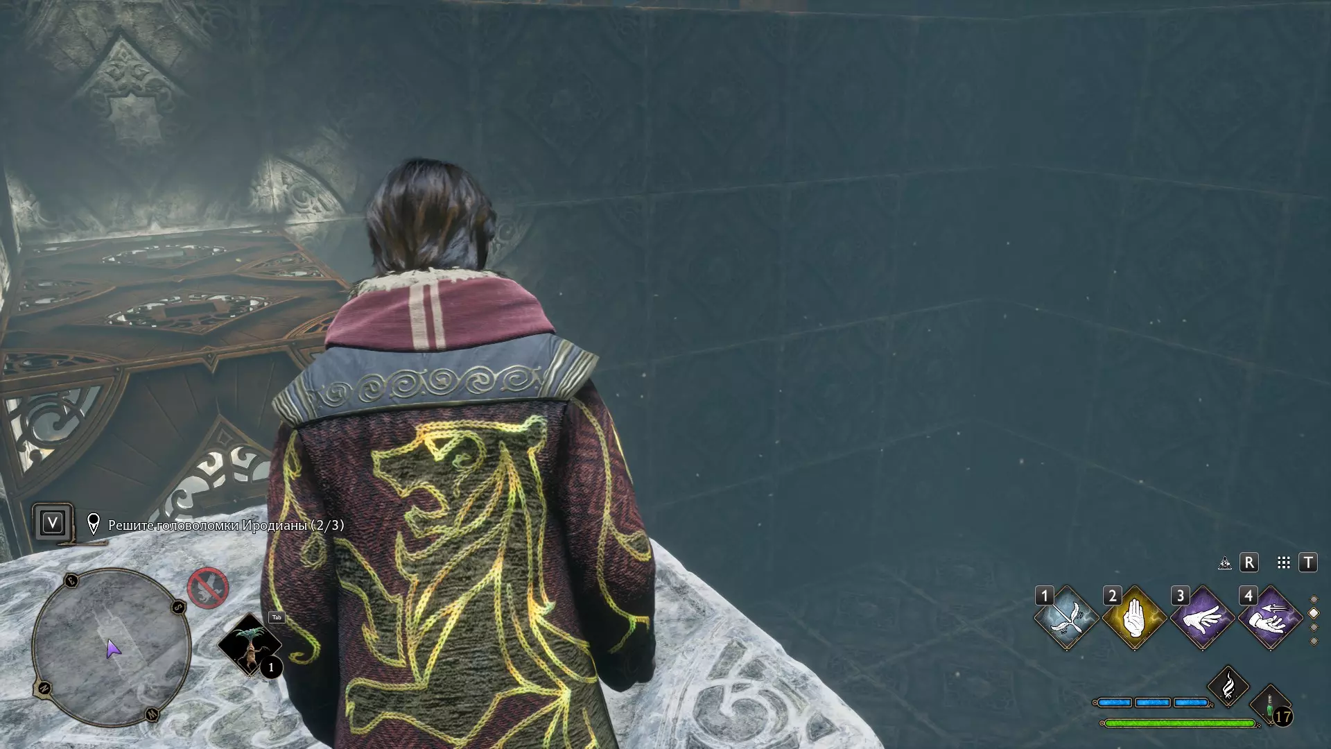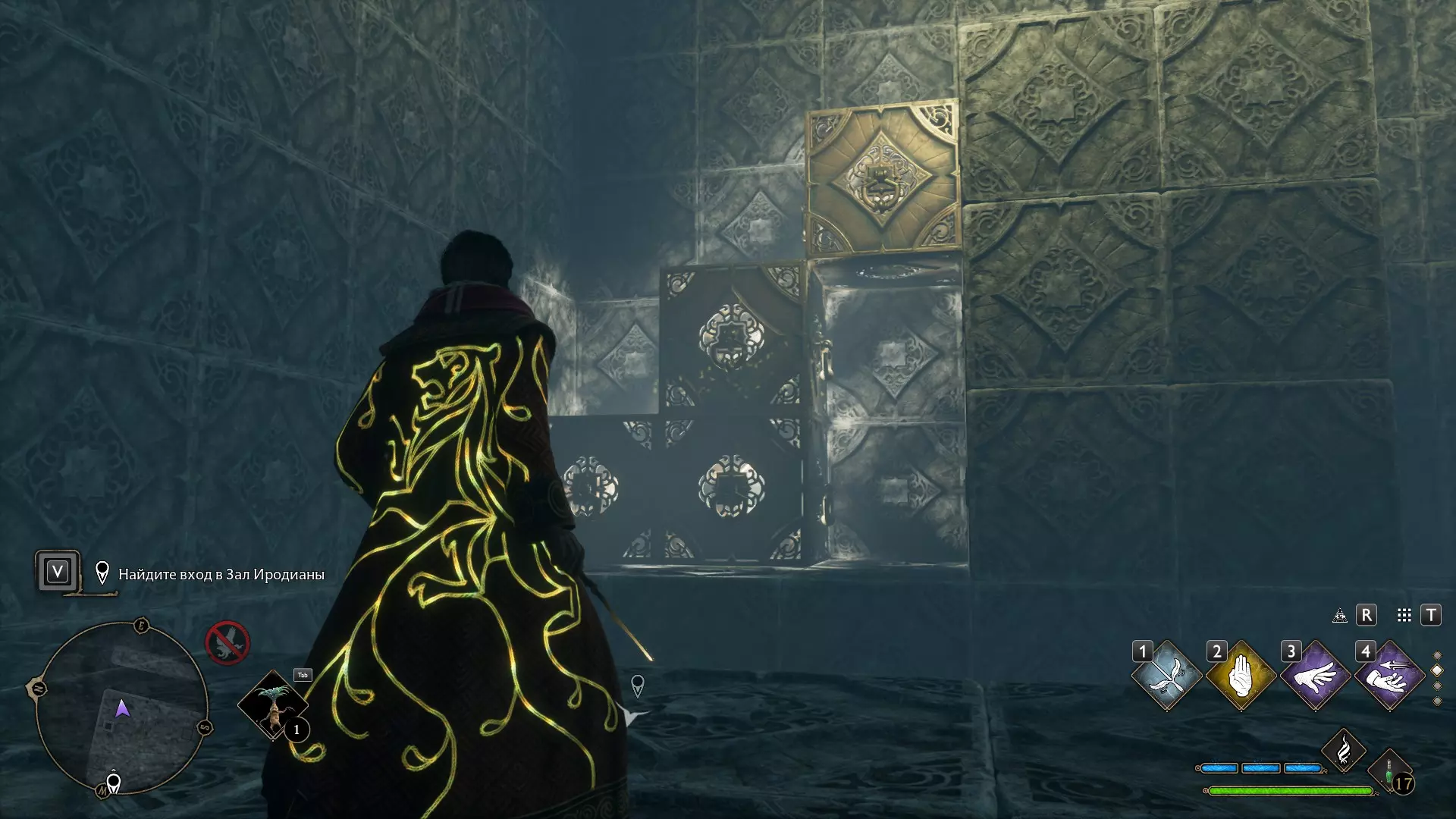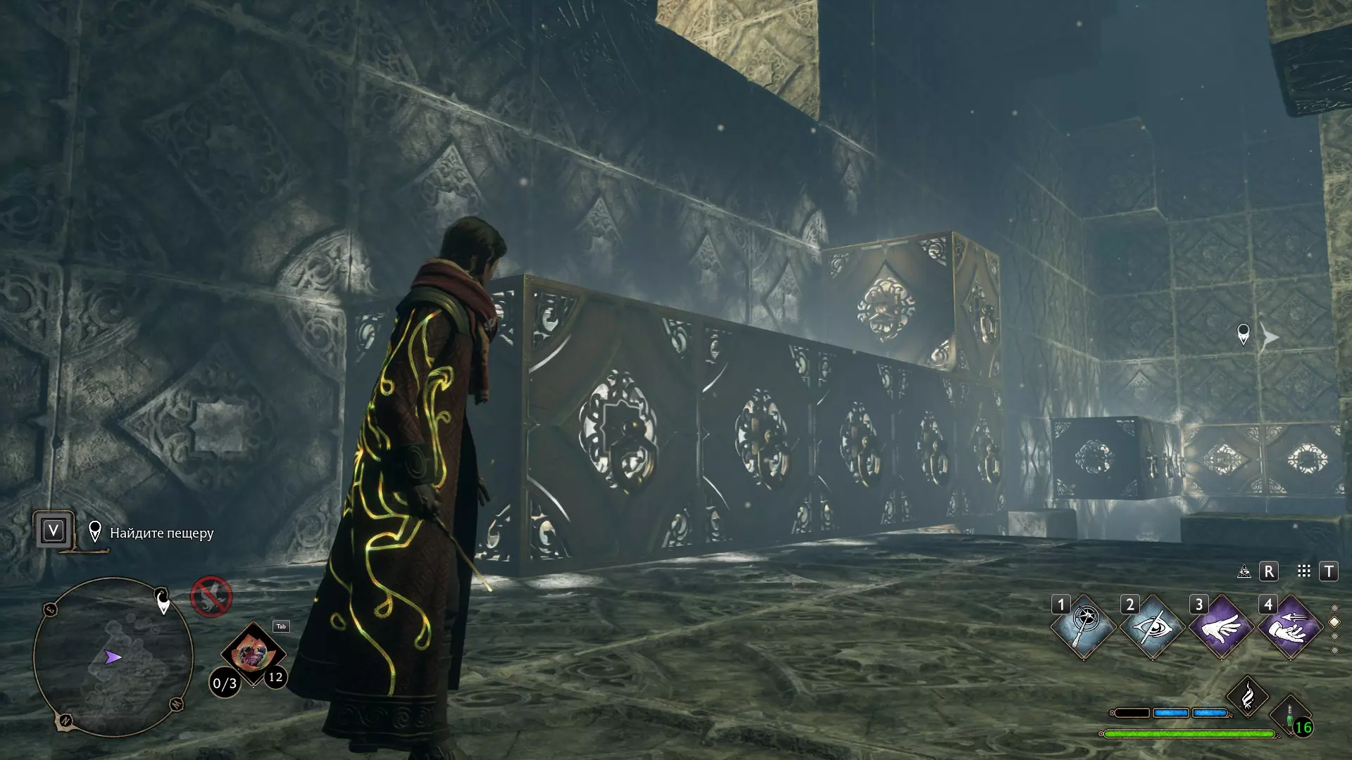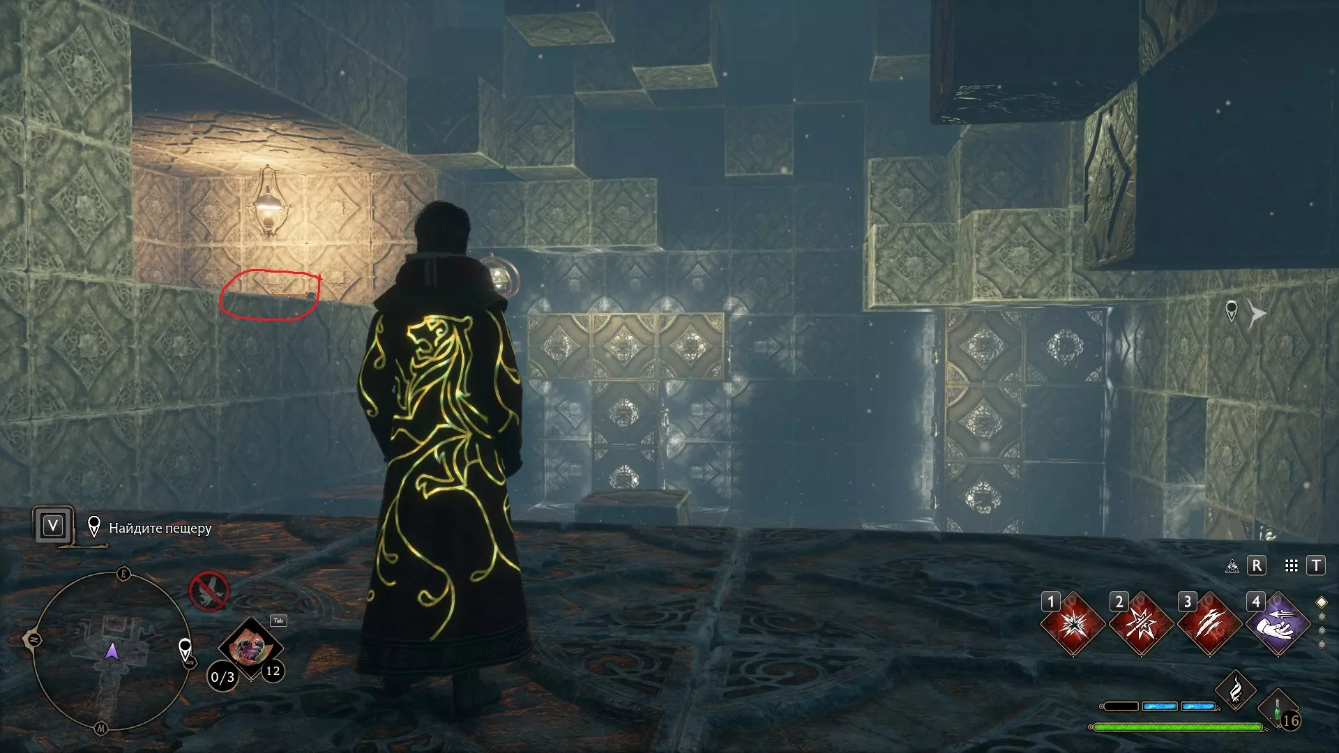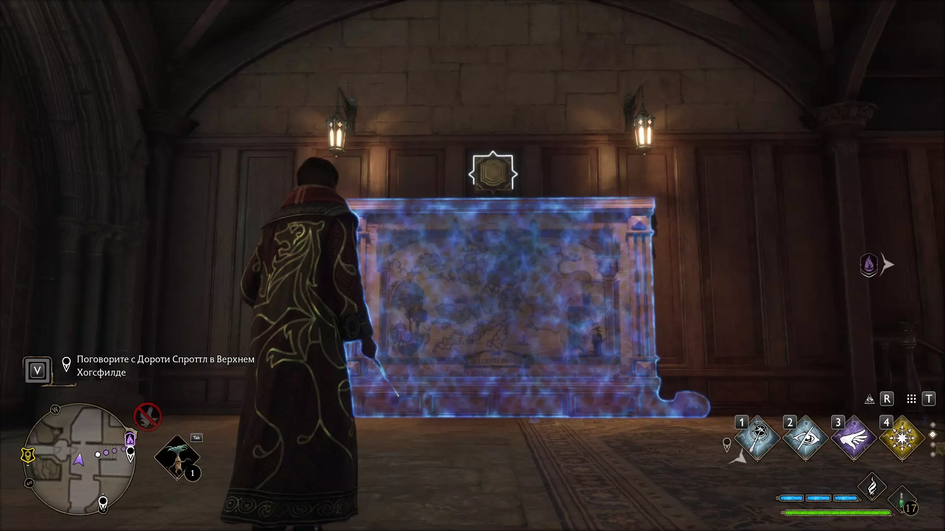只有在游戏接近中期,当你学会【冰刺术】(Глациус)或【时间停止】(Арресто моментум)这两个咒语后,才能进入这扇门。我们会看到头顶上有一个巨大的钟摆,需要在它开始从右向左摆动之前,将其停在最终位置。
